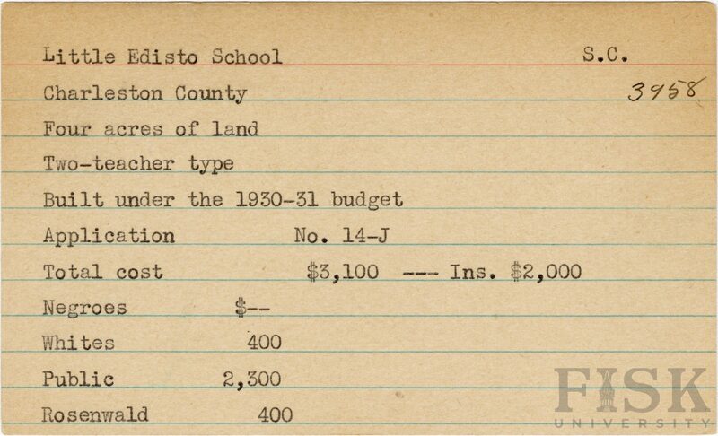 - Rosenwald Fund Card File, The Julius Rosenwald Fund Archives, 1918-1948, John Hope and Aurelia E. Franklin Library