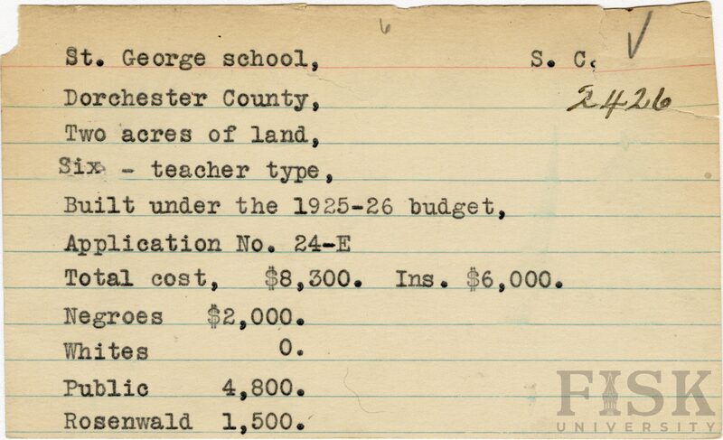 - Julius Rosenwald Fund--Buildings, African American schools--History--20th century, African American schools -- St. George School