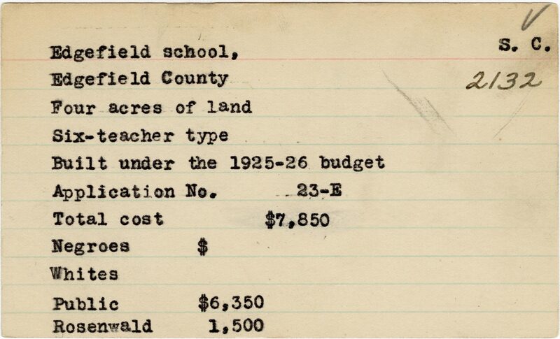 - School card from Rosenwald Fund for Edgefield School in Edgefield County, South Carolina