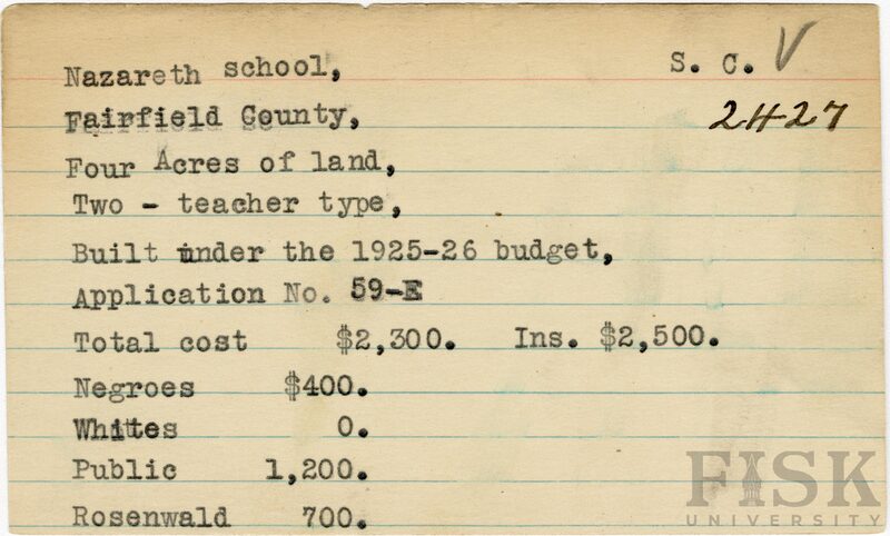- Rosenwald Fund Card File, The Julius Rosenwald Fund Archives, 1918-1948, John Hope and Aurelia E. Franklin Library