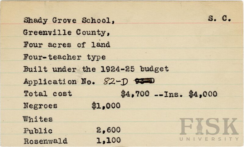 - Rosenwald Fund Card File, The Julius Rosenwald Fund Archives, 1918-1948, John Hope and Aurelia E. Franklin Library