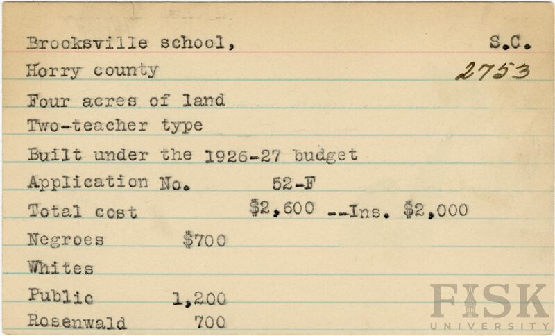 - Rosenwald Fund Card File, The Julius Rosenwald Fund Archives, 1918-1948, John Hope and Aurelia E. Franklin Library