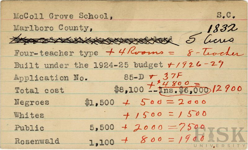 - Rosenwald Fund Card File, The Julius Rosenwald Fund Archives, 1918-1948, John Hope and Aurelia E. Franklin Library