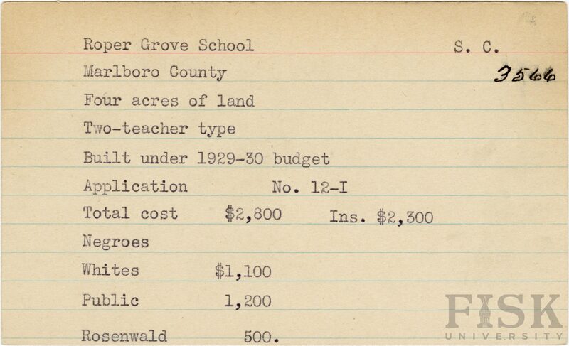 - Rosenwald Fund Card File, The Julius Rosenwald Fund Archives, 1918-1948, John Hope and Aurelia E. Franklin Library