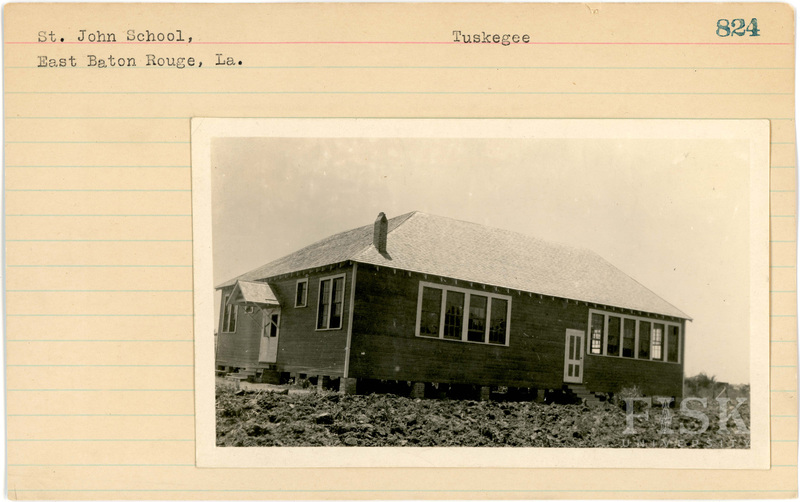 - Photo of St. John School in East Baton Rouge Parish, Louisiana with a note on the card that says, "Tuskegee"