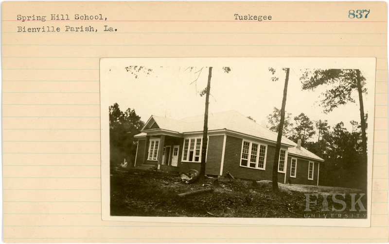 - Photos of Spring Hill School in Bienville Parish, Louisiana with a note on the front card that says, "Tuskegee"