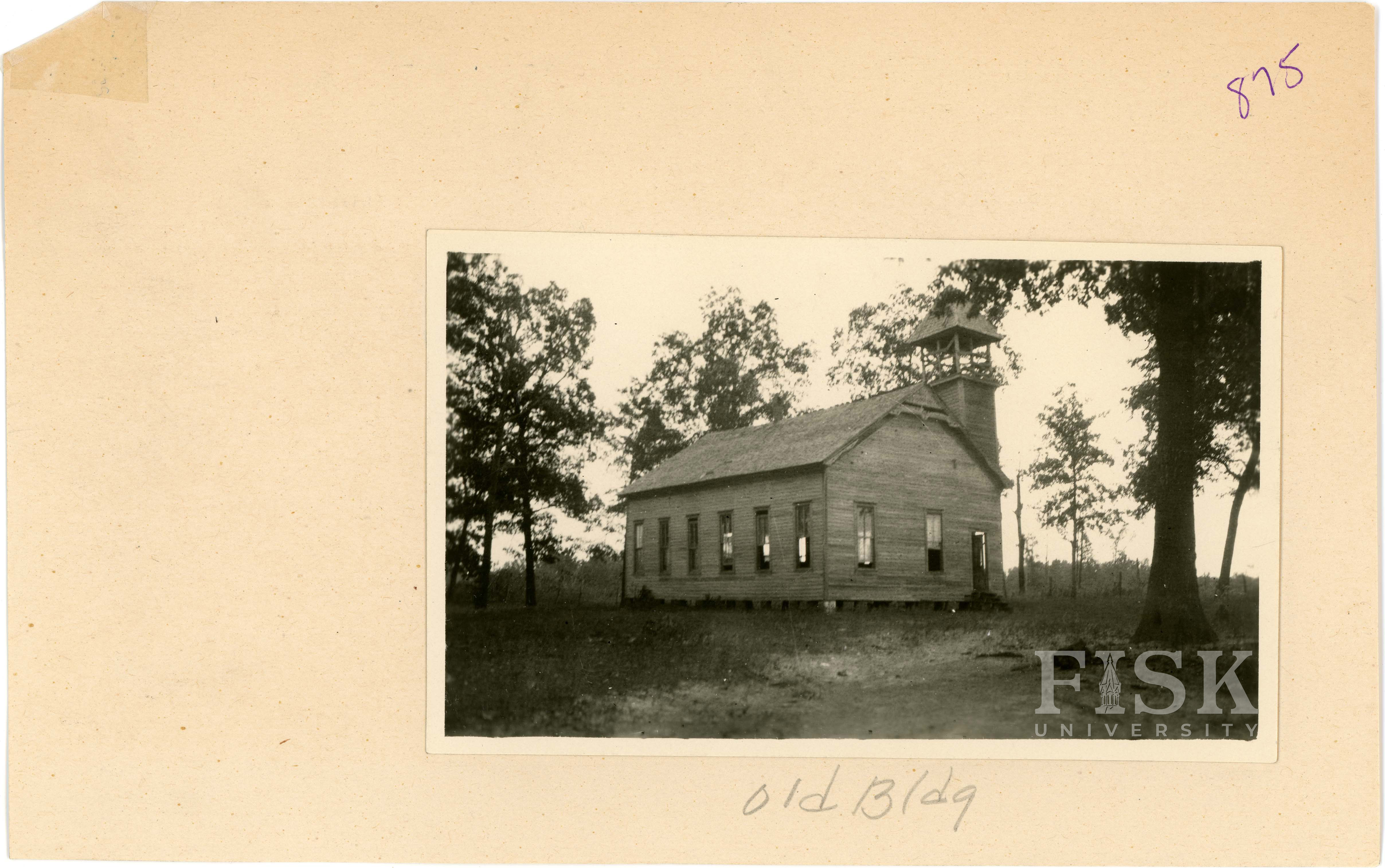 Photo of Aguilera School in Freestone County, Texas with a note on the front card that says, "New Bldg" and a note on the back card that says, "Old Bldg"