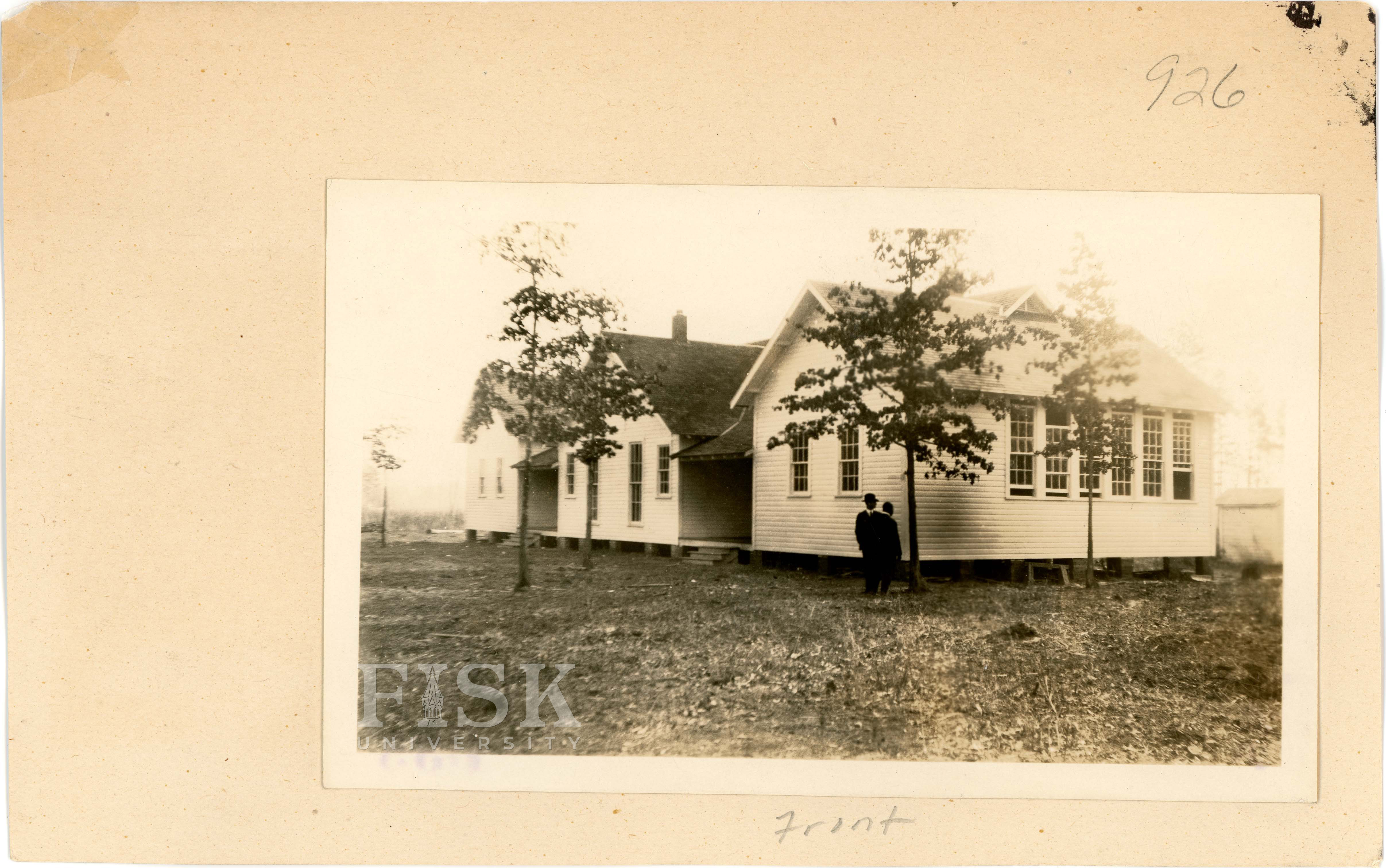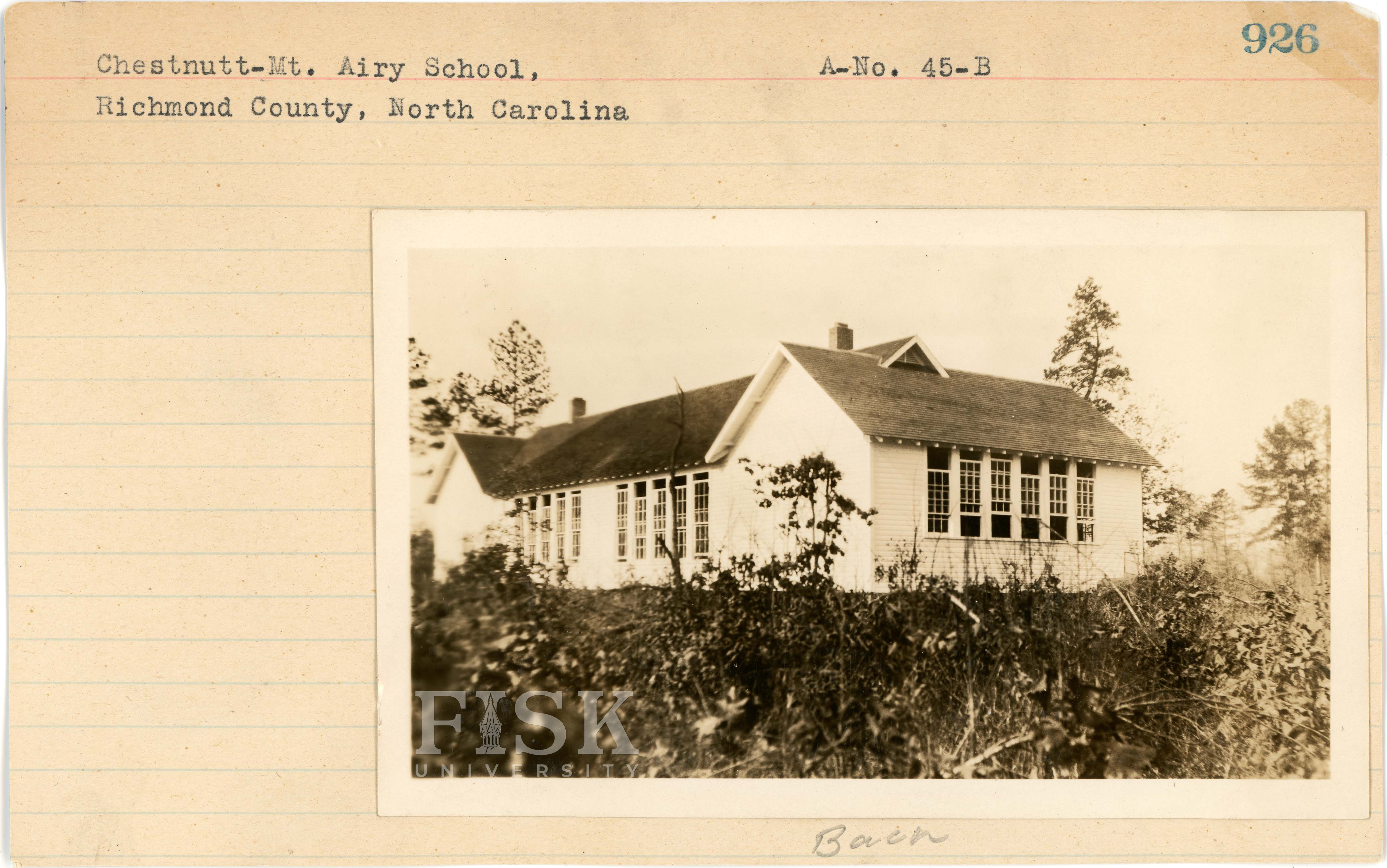 - Photos of Chestnutt-Mt. Airy School in Richmond County, North Carolina with a note on the front card that says, "Back" and a note on the back card that says, "Front"