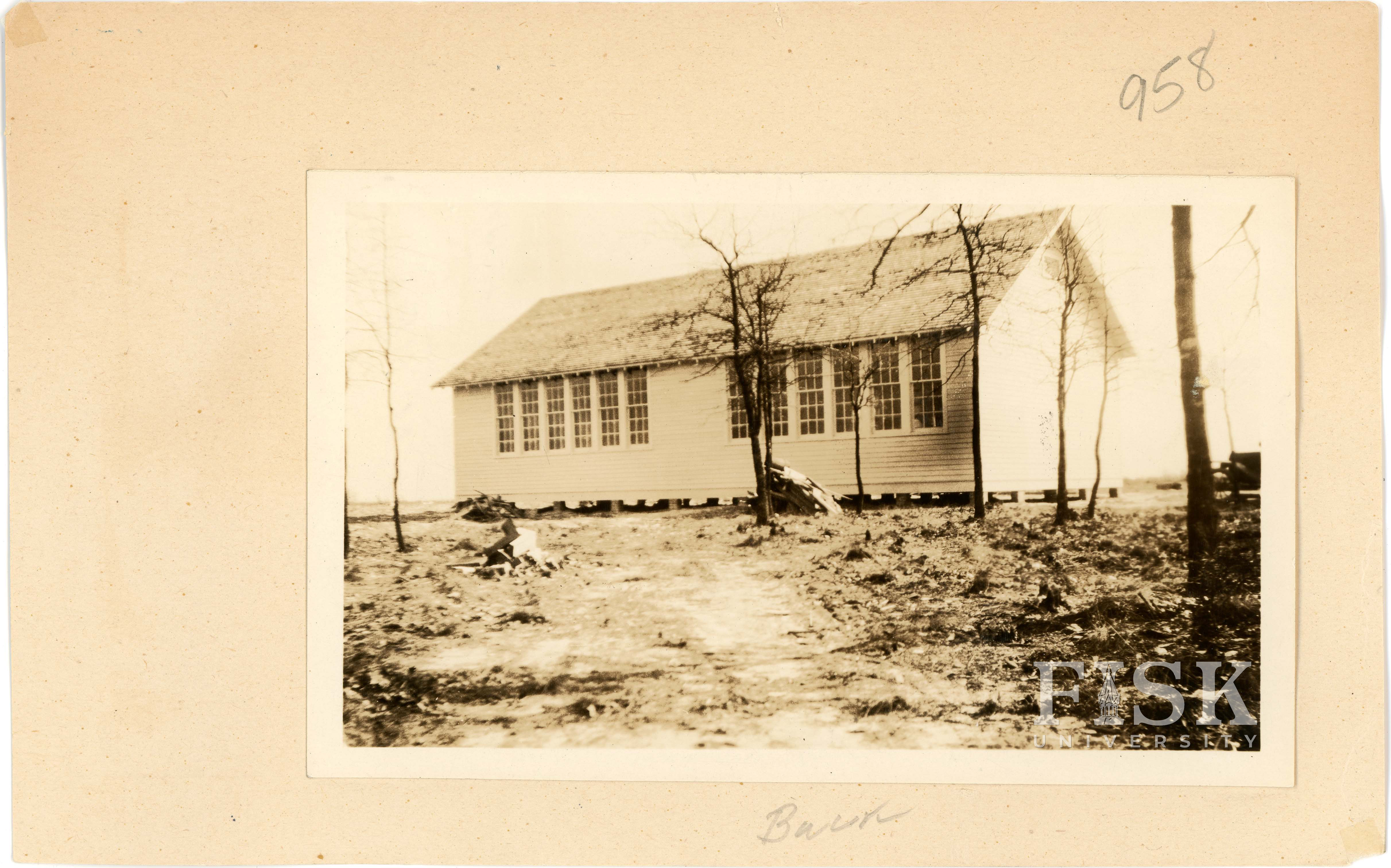 - Photos of Upper Little River School No. 5 in Harnett County, North Carolina with a note on the front card that says, "Front" and a note on the back card that says, "Back"
