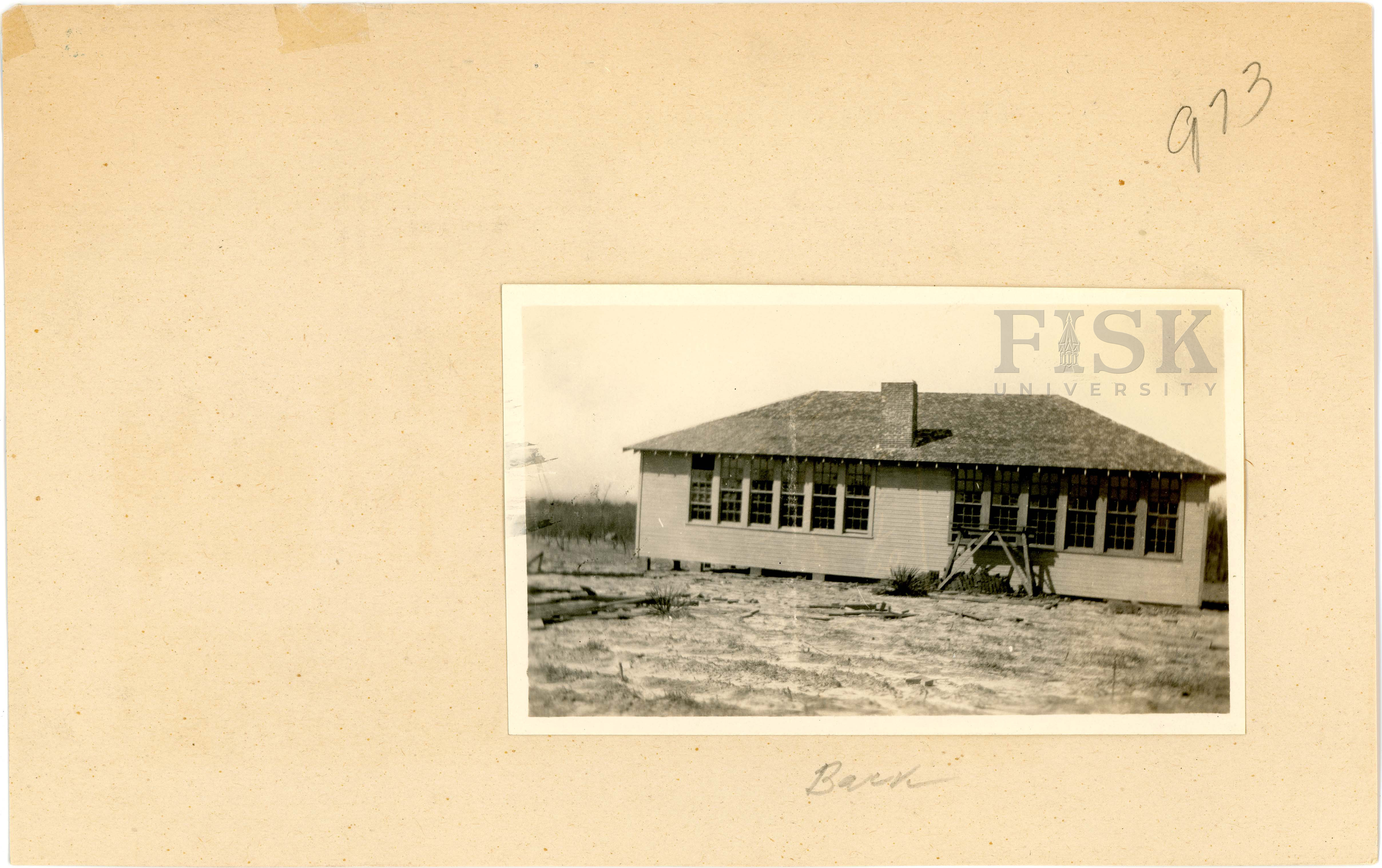 - Photos of Fauke School in Wood County, Texas with a note on the front card that says, "Front" and a note on the back card that says, "Back"