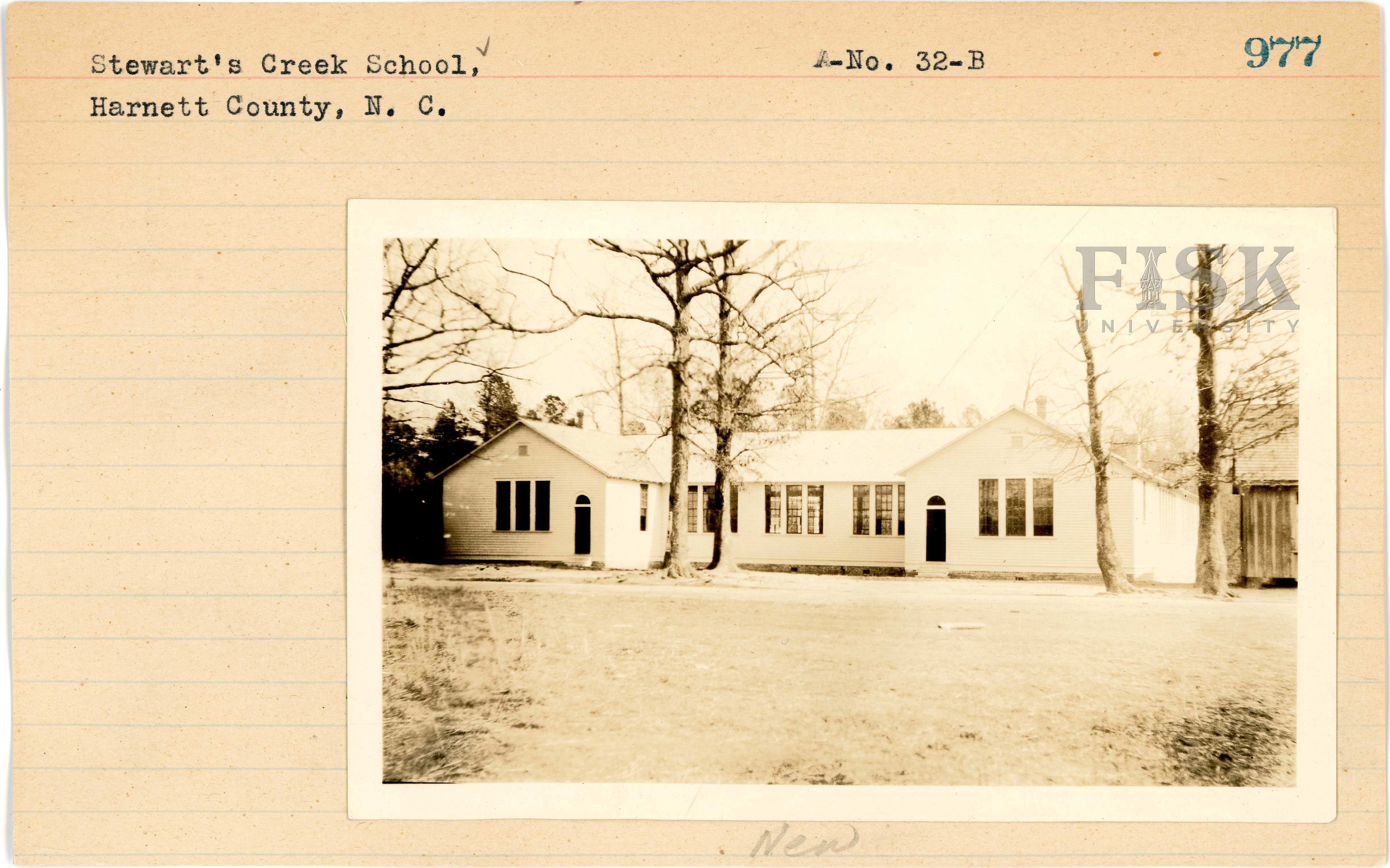 - Photos of Stewart's Creek School in Harnett County, North Carolina with a note on the front card that says, "New" and a note on the back card that says, "Old"