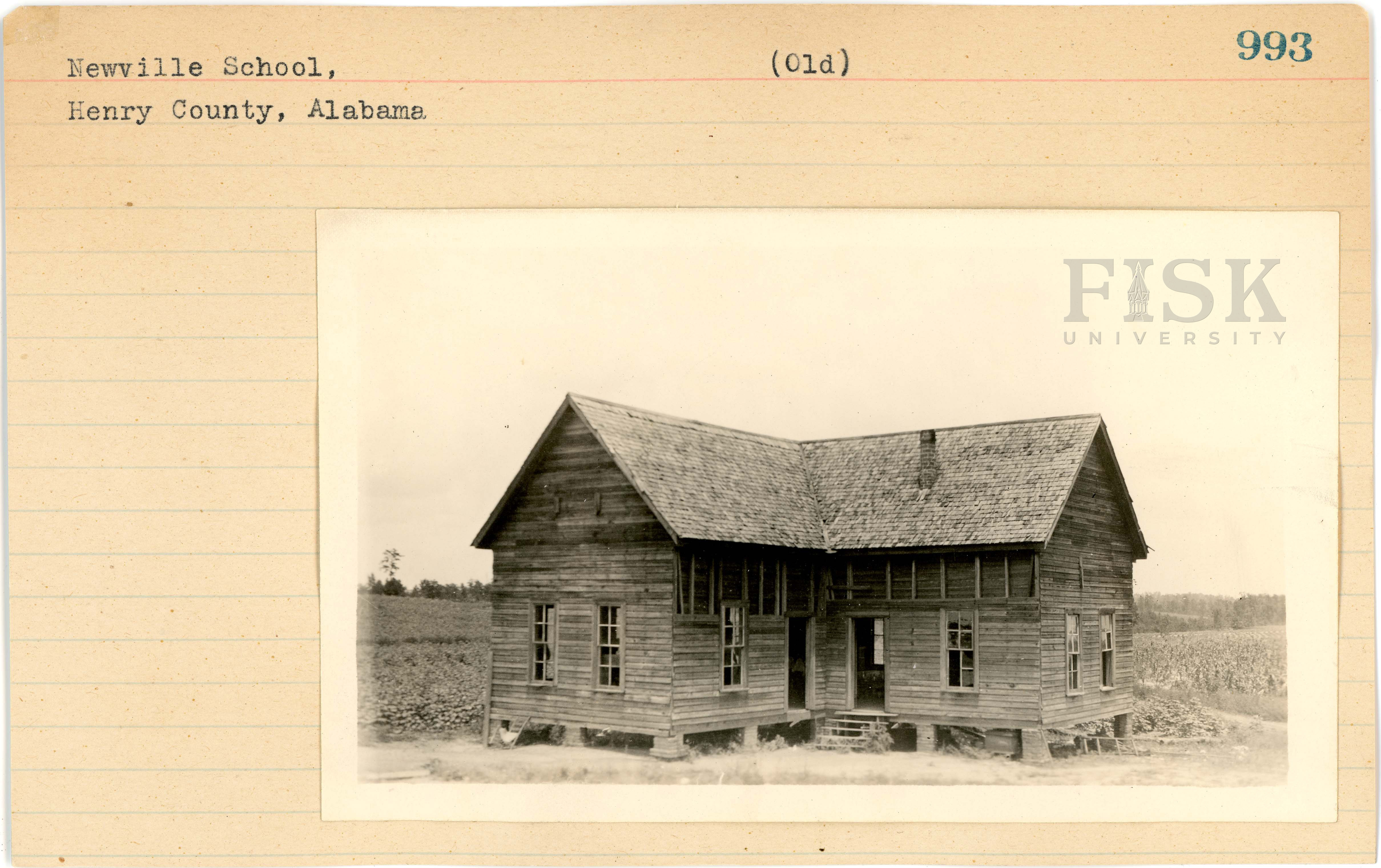 - Photo of Newville School in Henry County, Alabama with a note on the card that says, "(Old)"