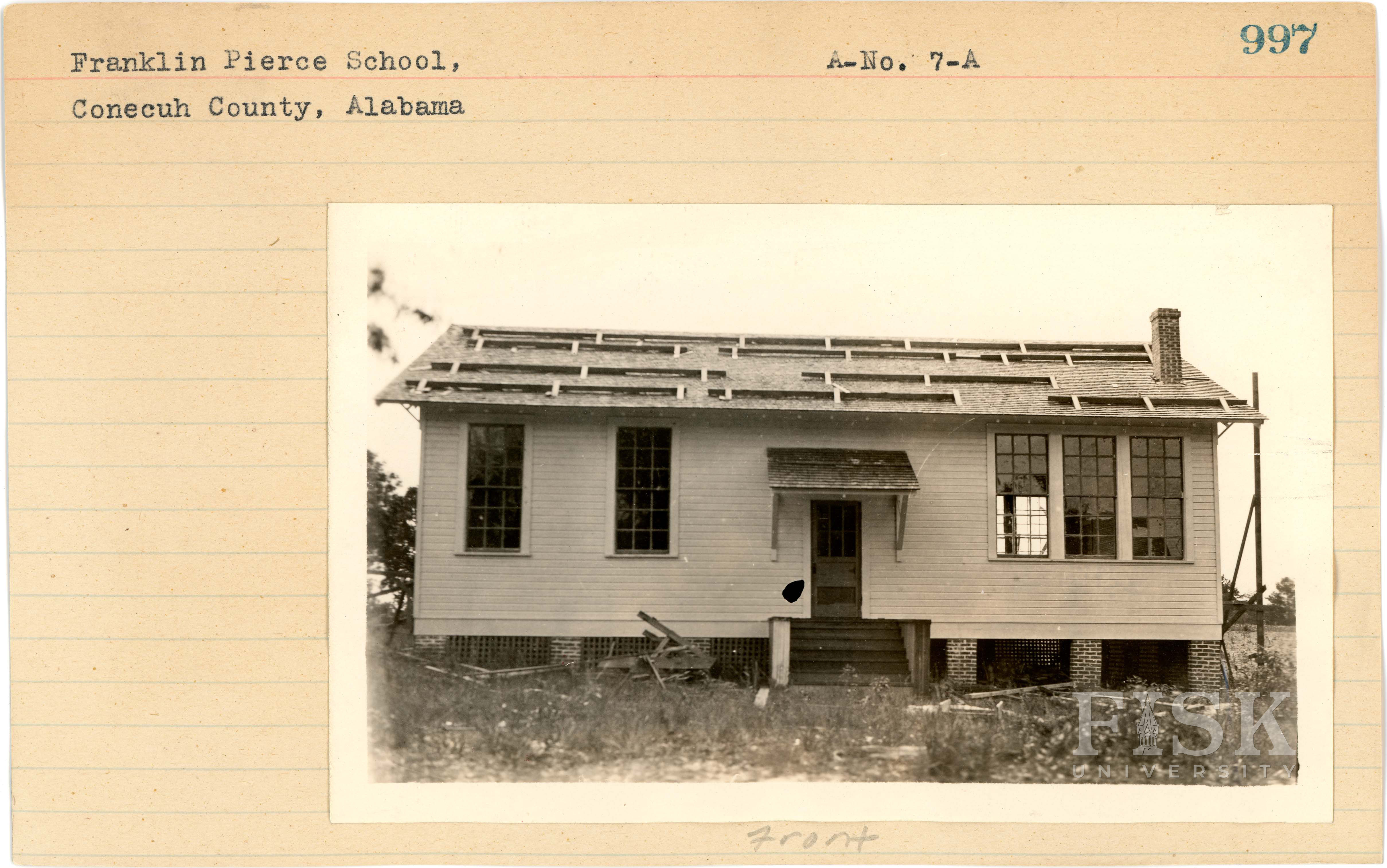 - Photos of Franklin Pierce School in Conecuh County, Alabama with a note on the front card that says, "Front" and note on the back card that says, "Back"