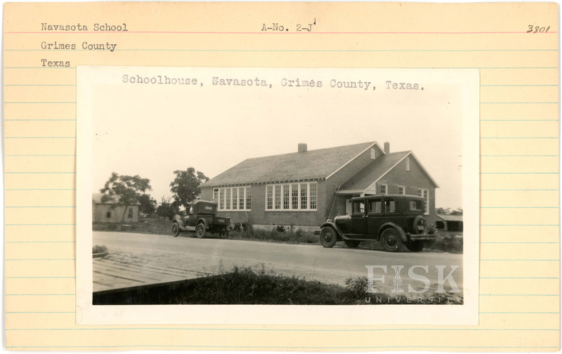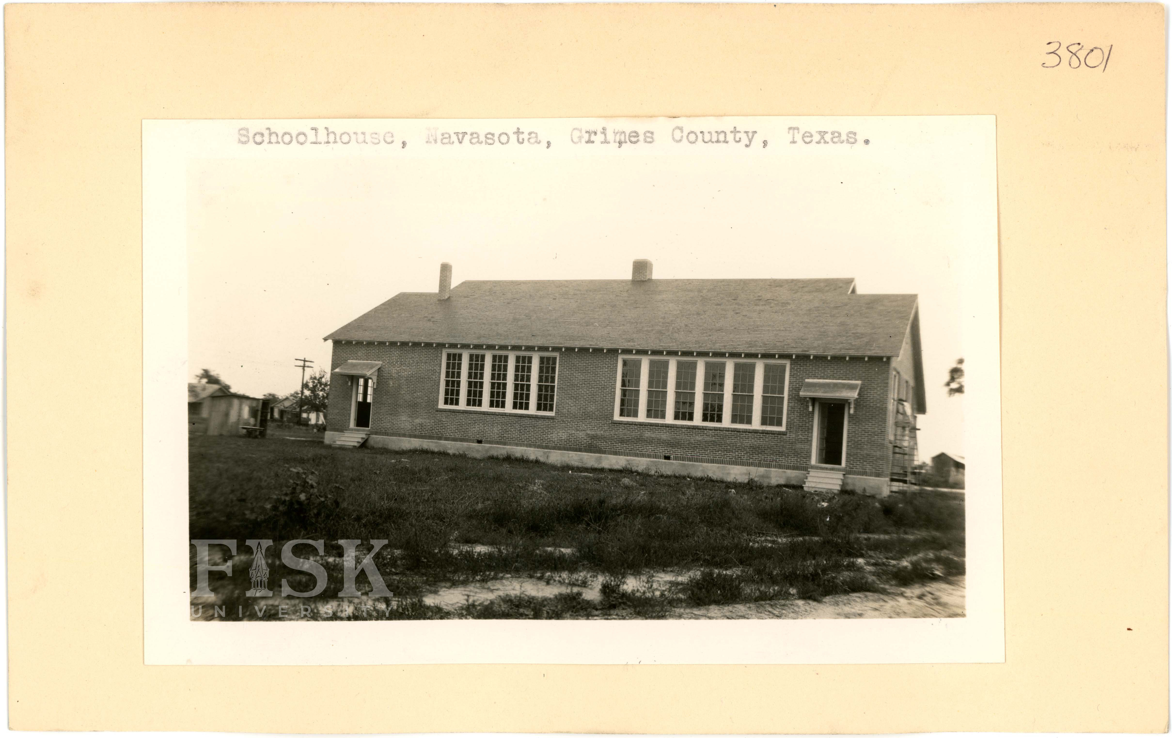 - Photos of Navasota School in Grimes County, Texas with a note on the photo that says, "Schoolhouse, Navasota, Grimes County, Texas."
