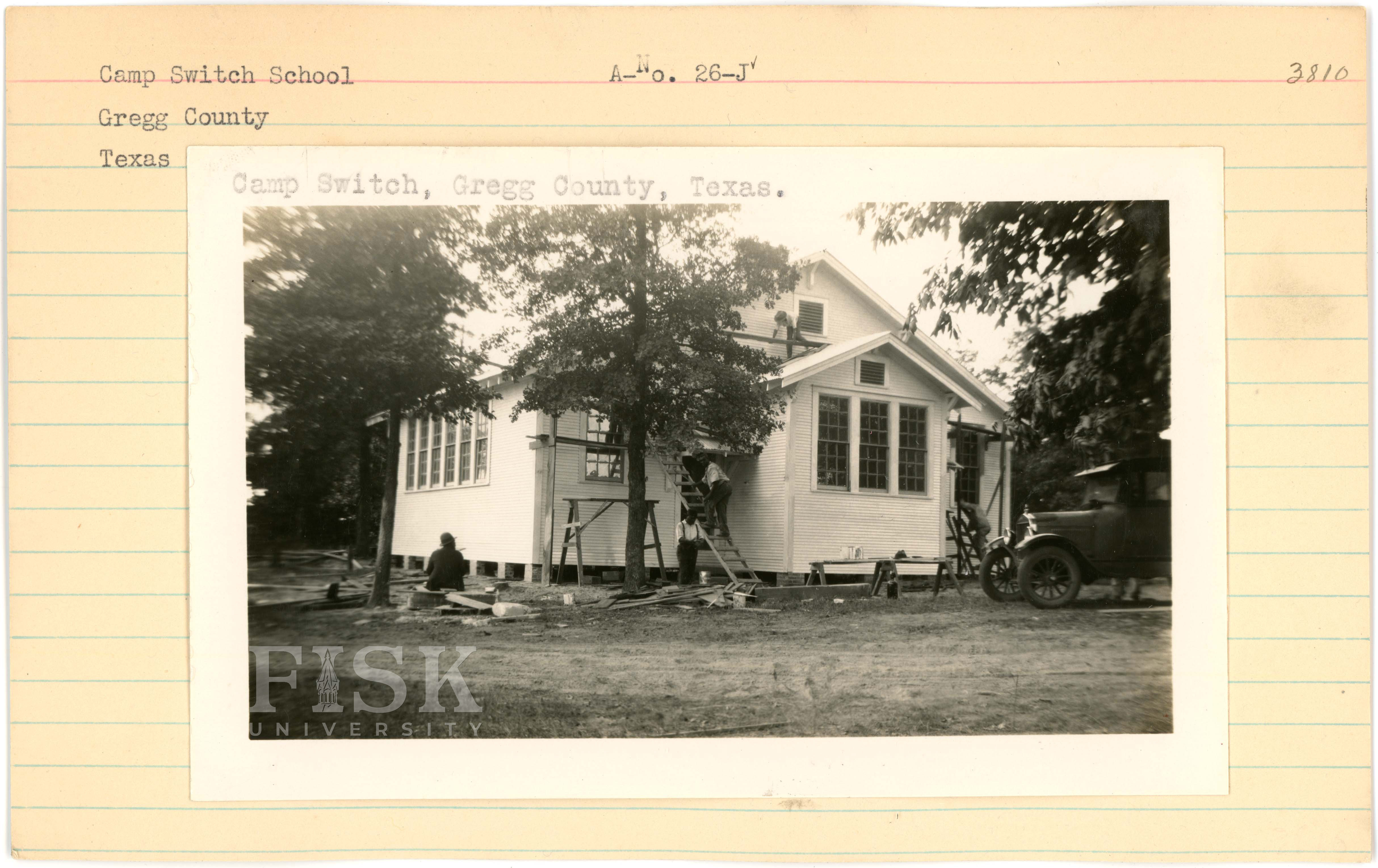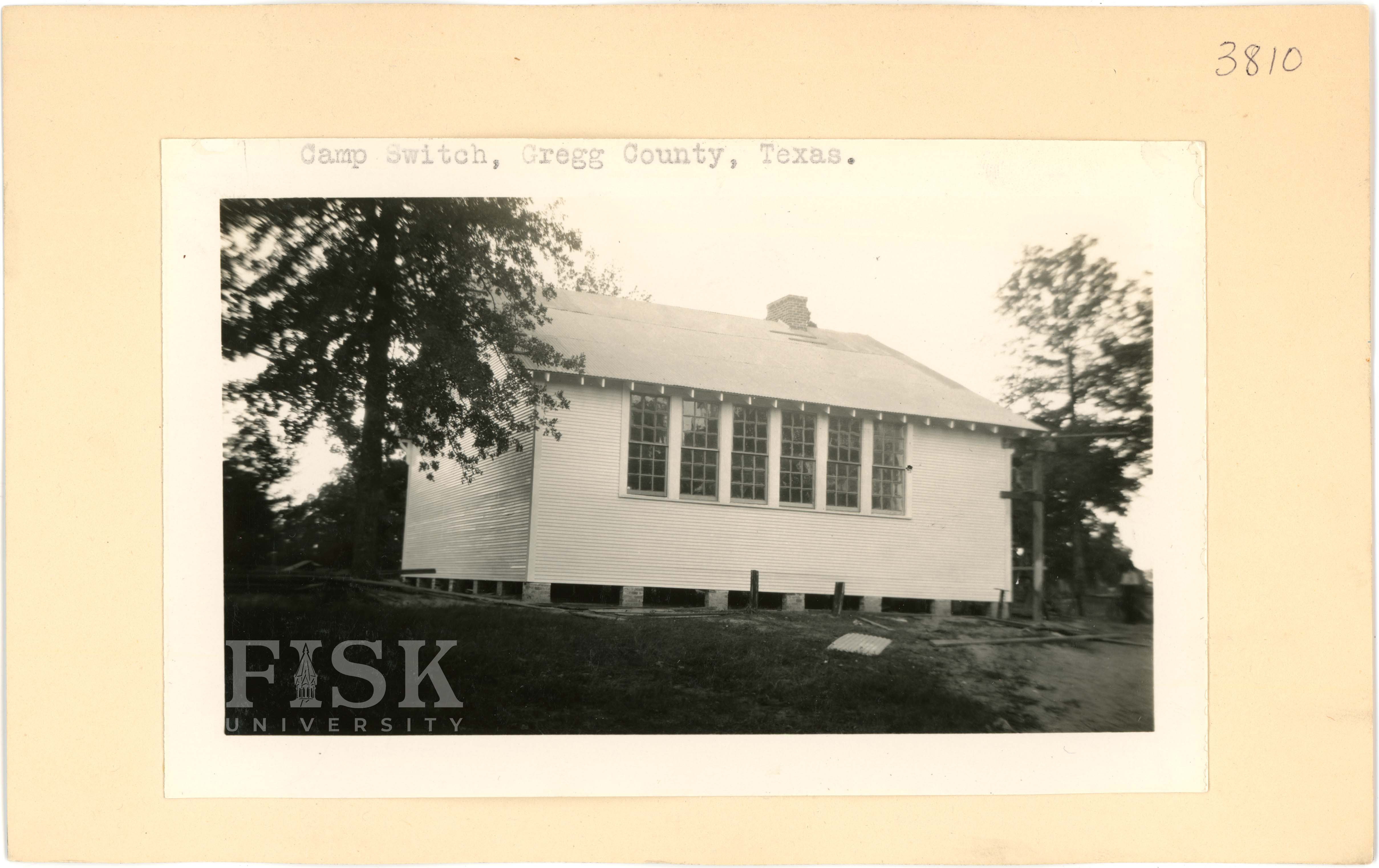 - Photos of Camp Switch School in Gregg County, Texas with a note on the photo that says "Camp Switch, Gregg County, Texas."