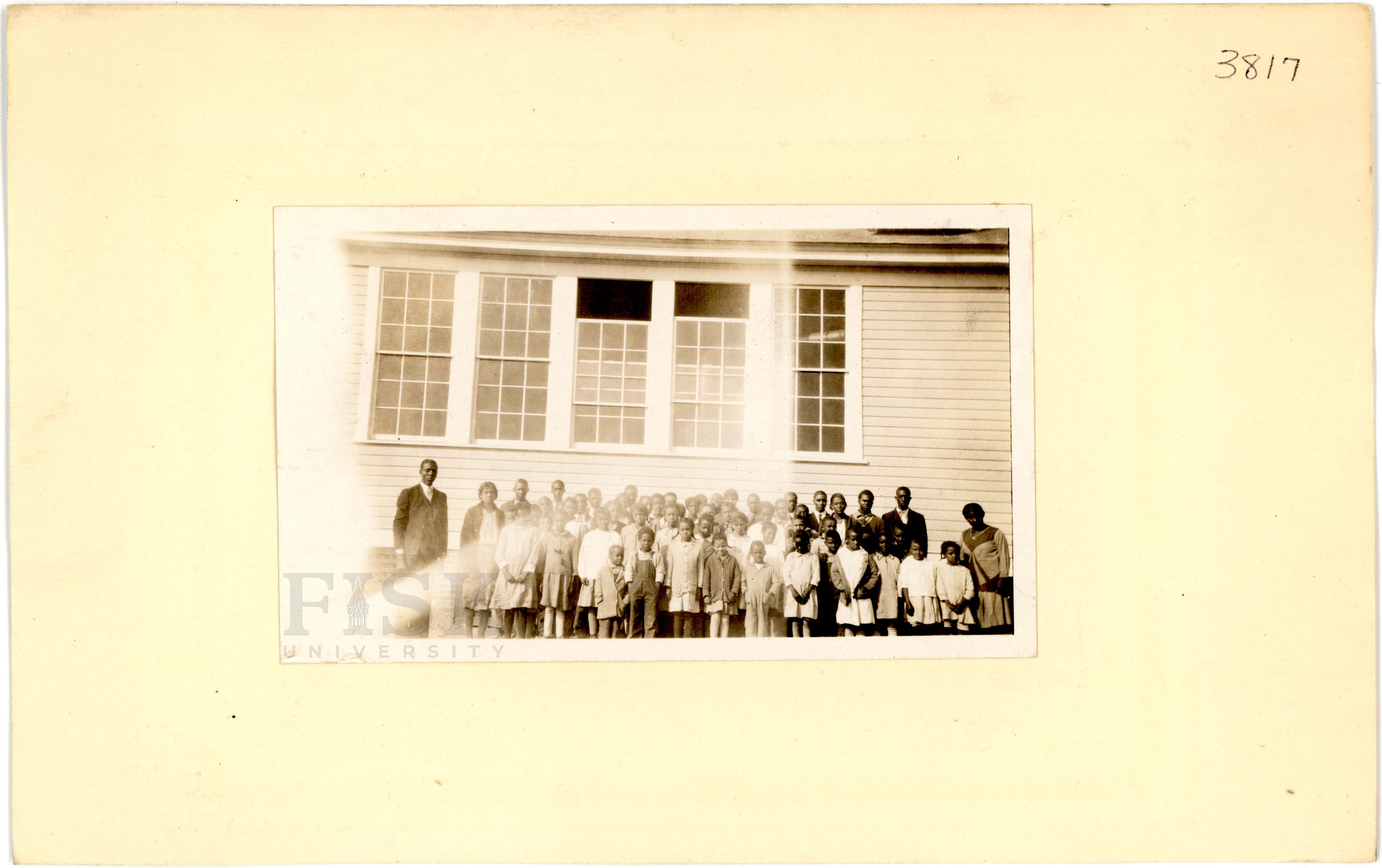 Photos of Murray School in Lamar County, Alabama, one with pupils standing outside of the school house