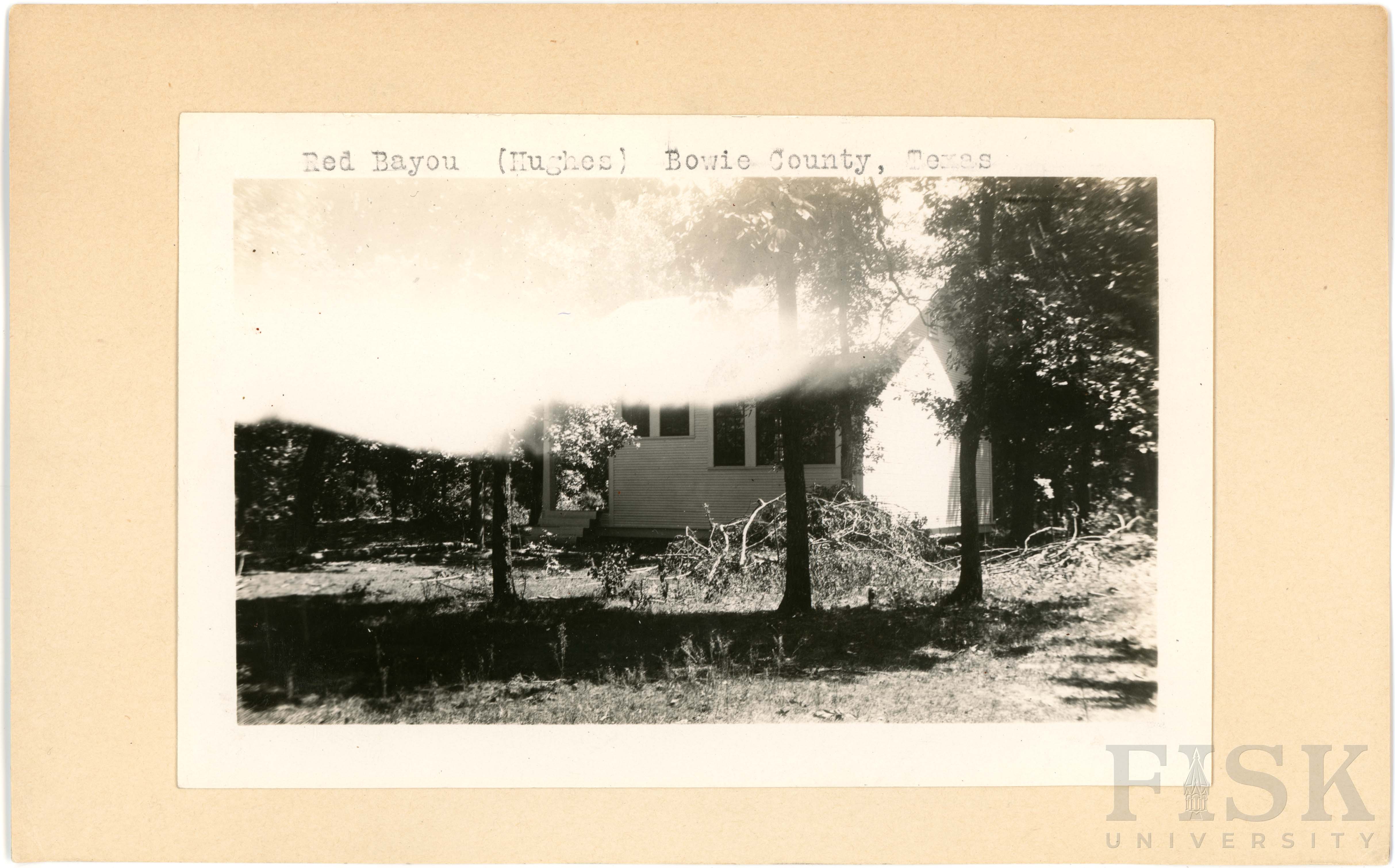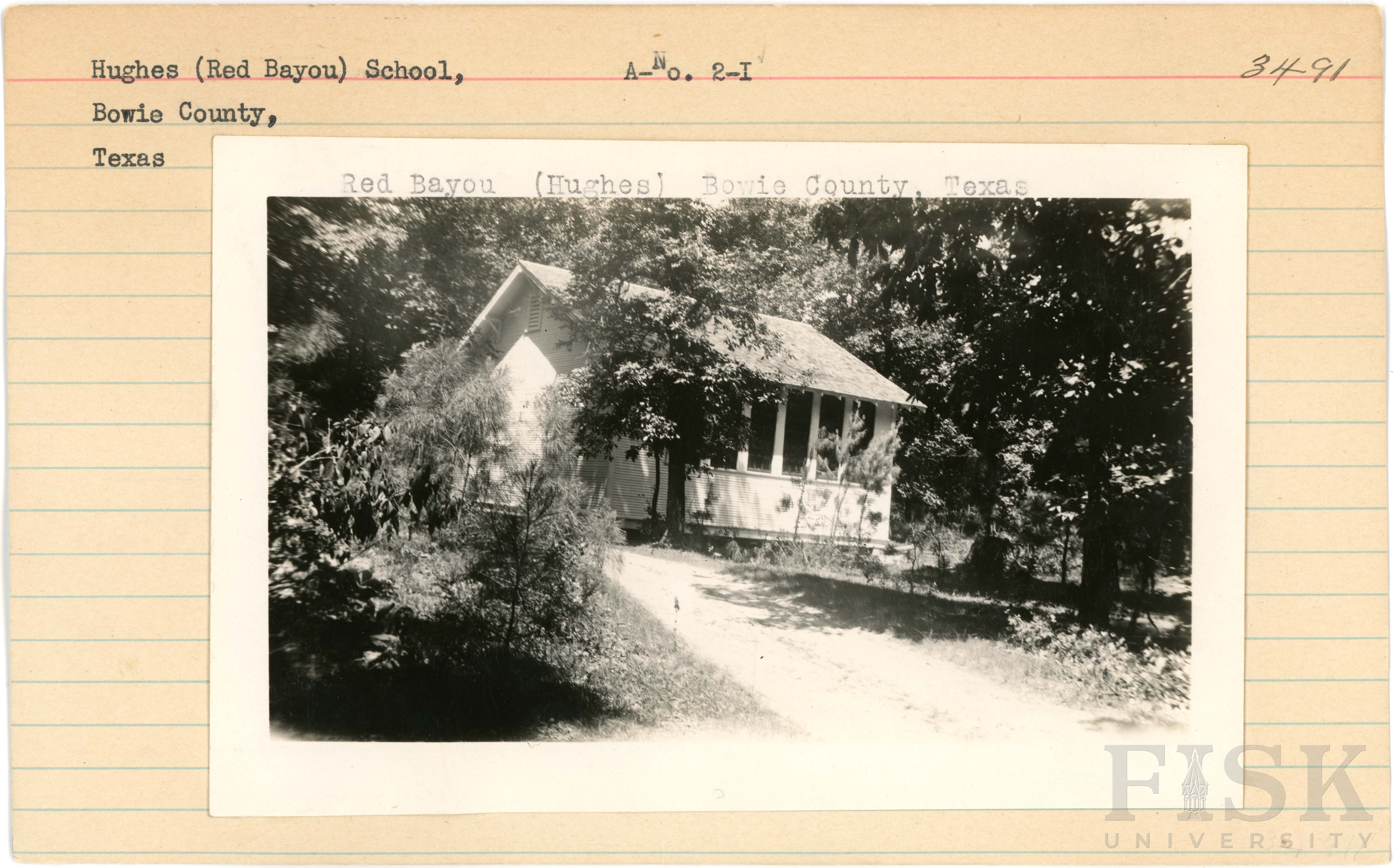 - Photos of Hughes School in Bowie County, Texas with inscriptions that say, "Red Bayou (Hughes), Bowie County, Texas"