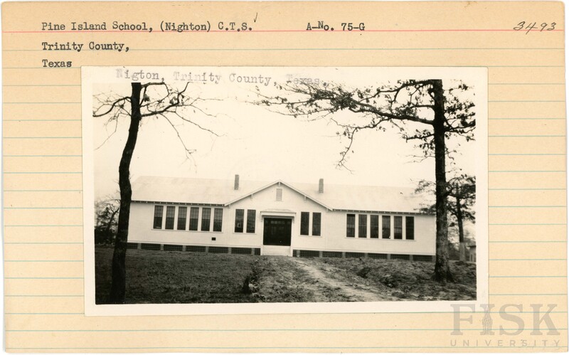 - Photos of Pine Island School in Trinity County, Texas with inscriptions that say, "Highton, Trinity County, Texas"