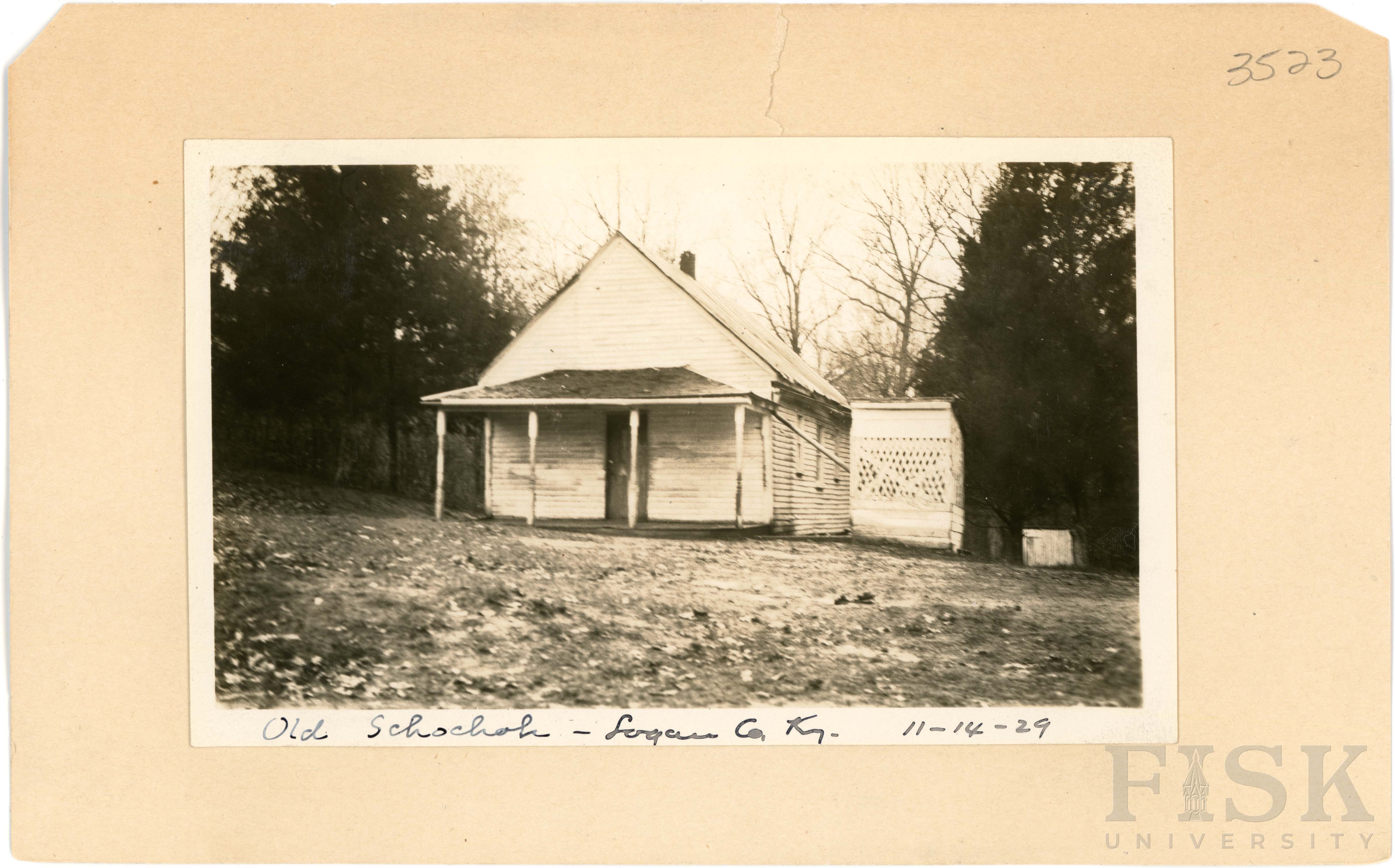 - Photo of Schochoh School in Logan County, Kentucky on the front of the school card with an inscription that says, "Schochoh - Logan Co., Ky. 11-14-29"; photo of Schochoh School in Logan County, Kentucky on the back of the card with an inscription that says, "Old Schochoh - Logan Co., Ky. 11-14-29"