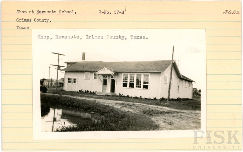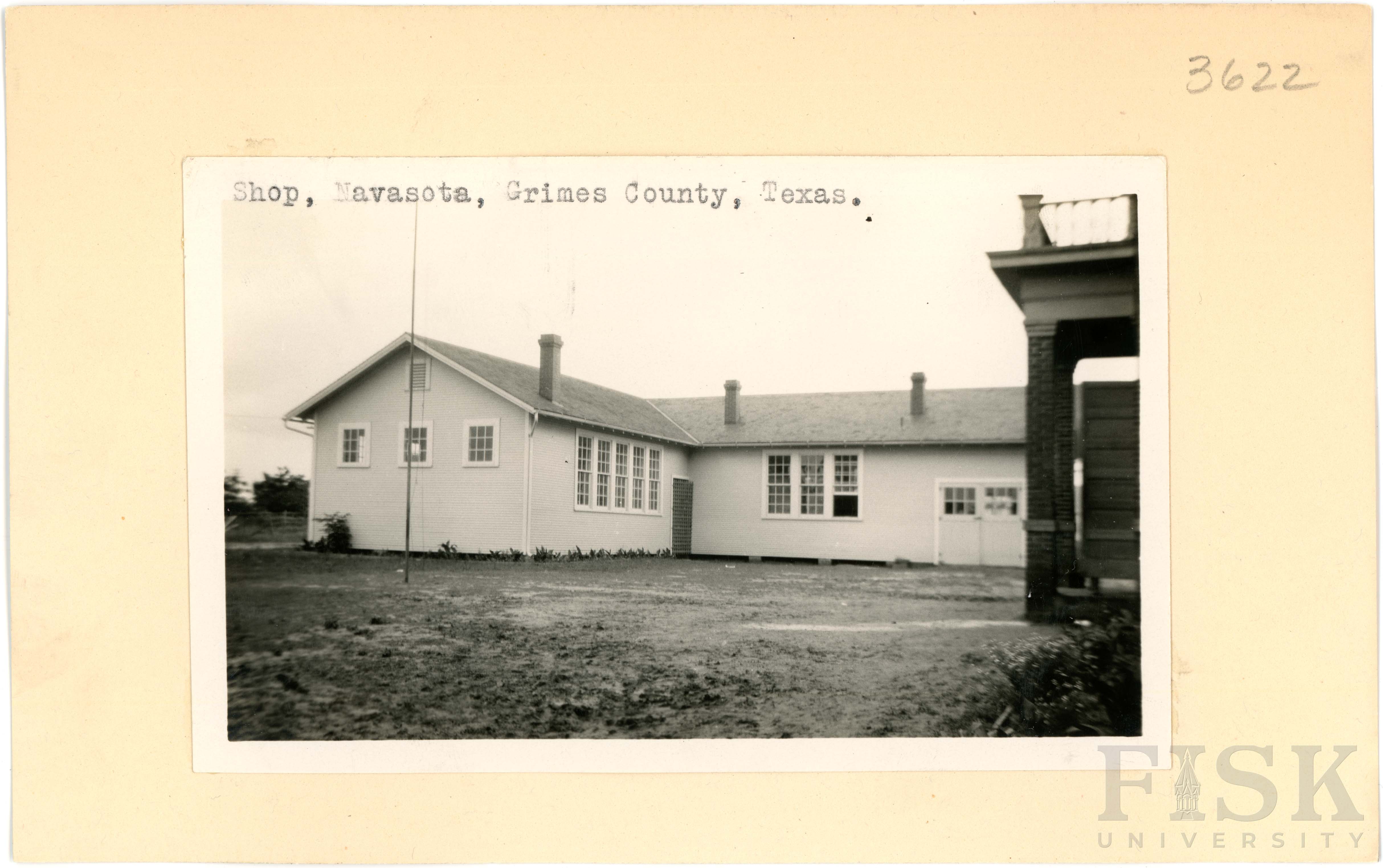 - Photos of the shop at Navasota School in Grimes County, Texas wi inscripions that say, "Shop, Navasota, Grimes County, Texas"