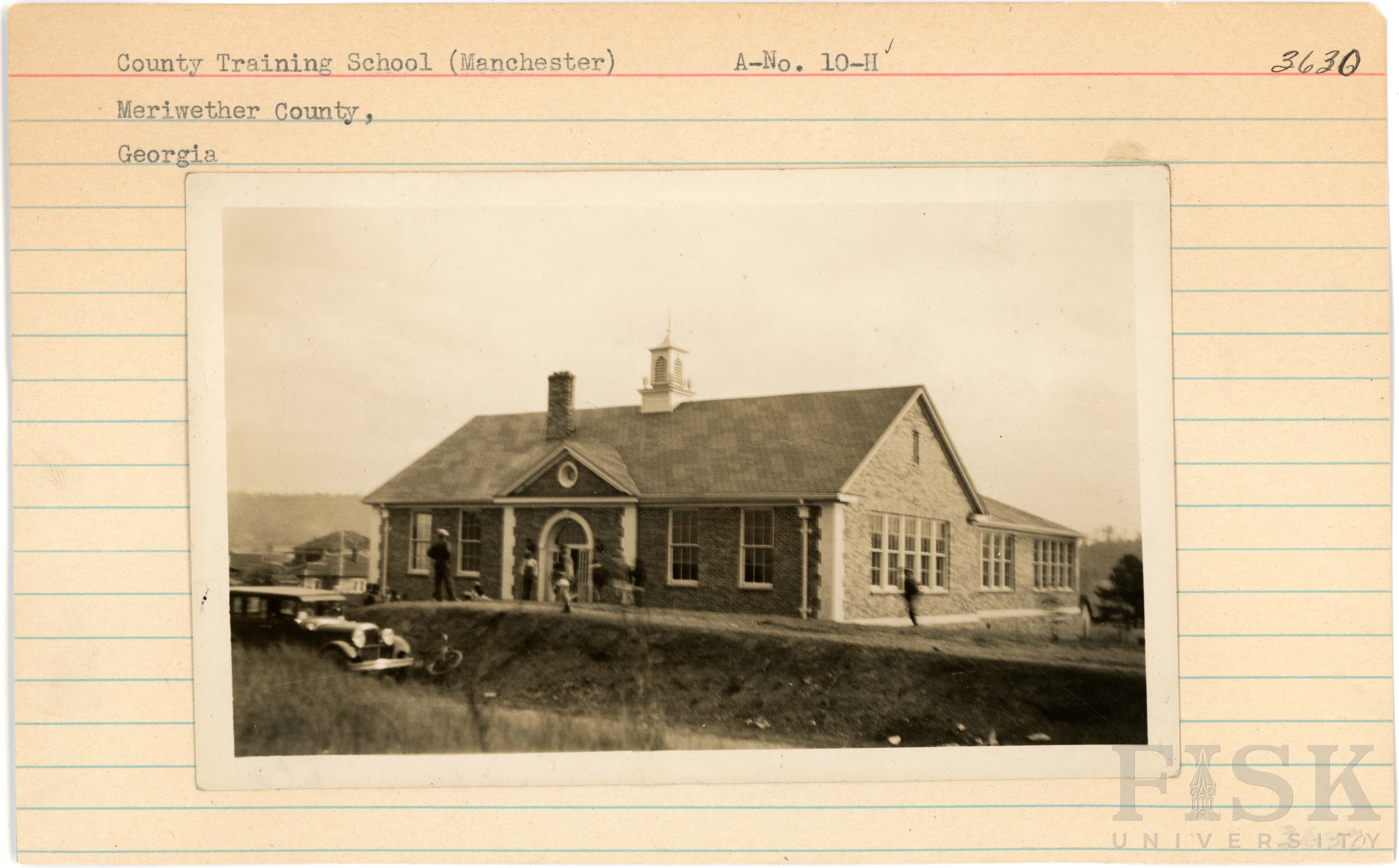 - Photo of County Training School in Meriwether County, Georgia on the front of the school card; photo of pupils at County Training School in Meriwether County, Georgia on the back of the card