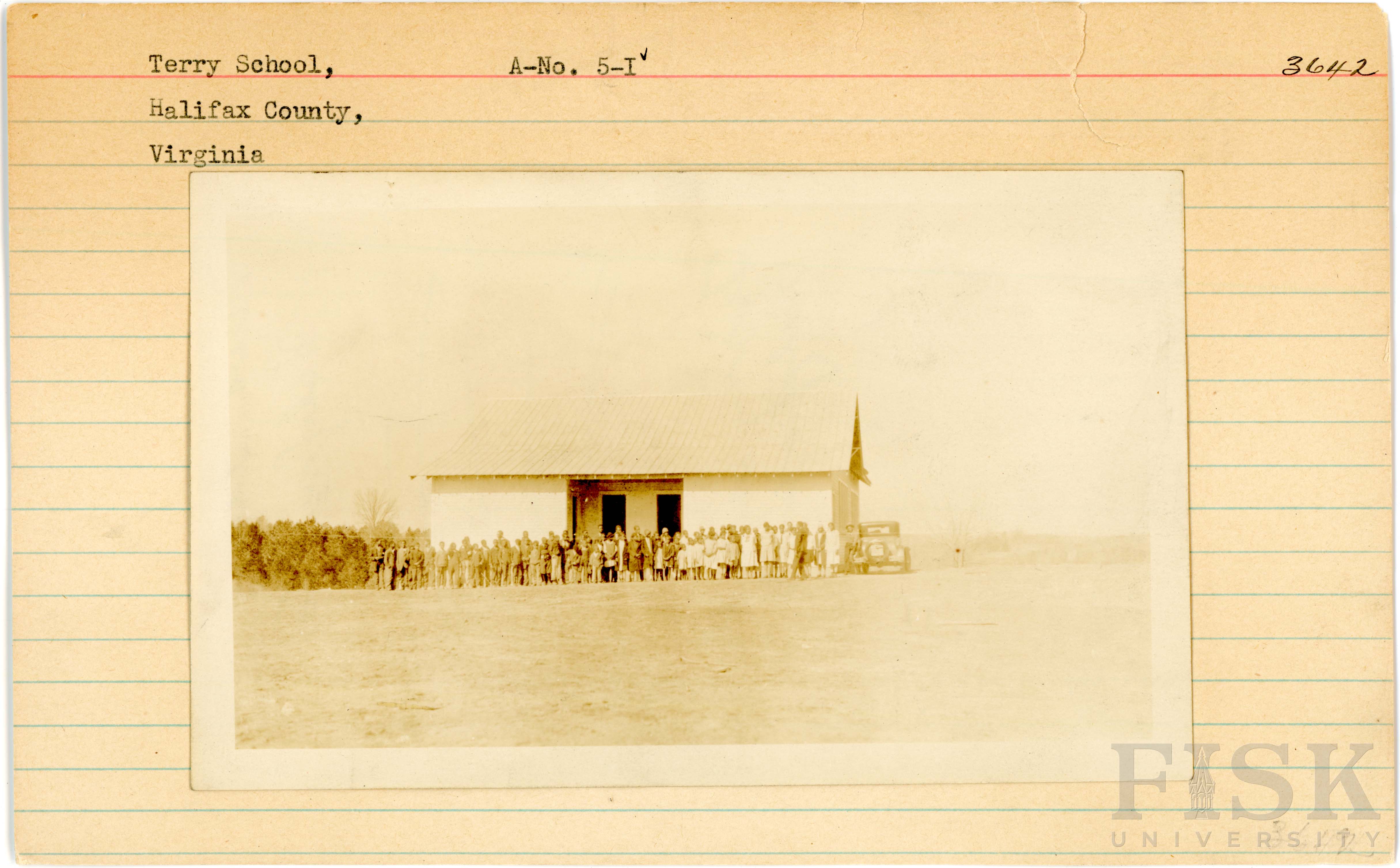- Photo of pupils at Terry School in Halifax County, Virginia on the front of the school card; photo of Terry School in Halifax County, Virginia on the back of the card