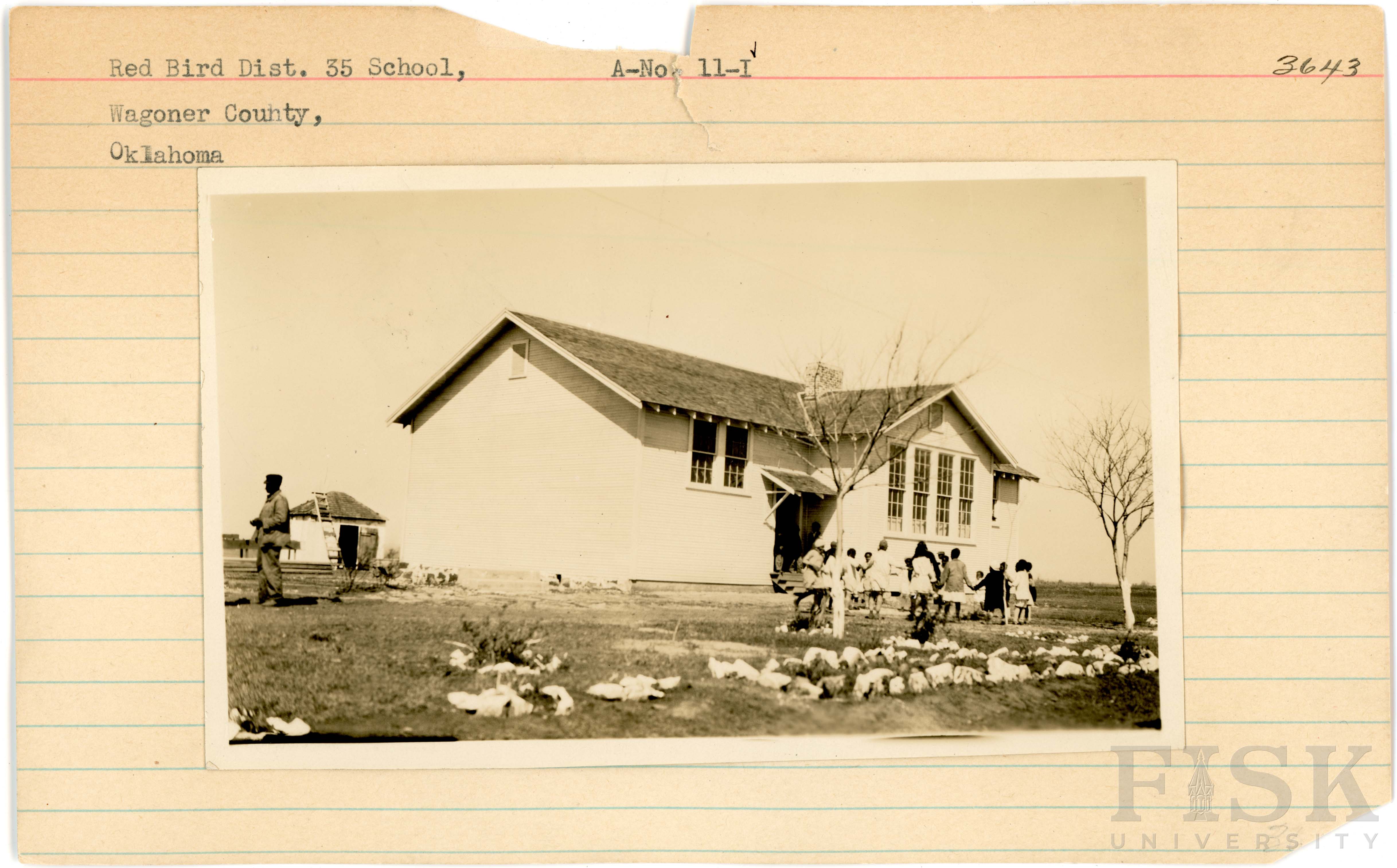 - Photo of pupils at Red Bird District No. 35 School in Wagoner County, Oklahoma on the front of the school card; photo of Red Bird District No. 35 School in Wagoner County, Oklahoma on the back of the card