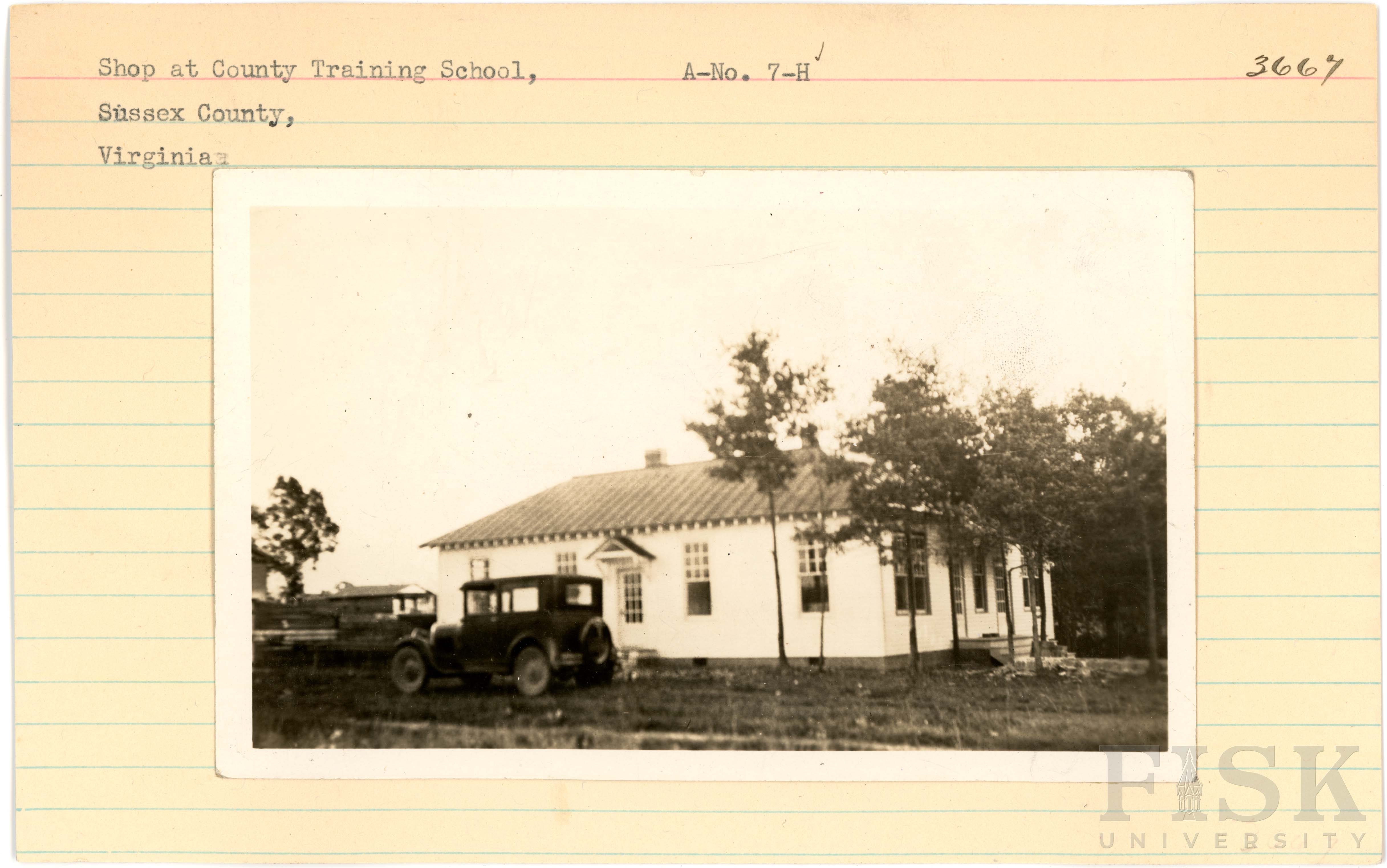 - Photo of the shop at County Training School in Sussex County, Virginia