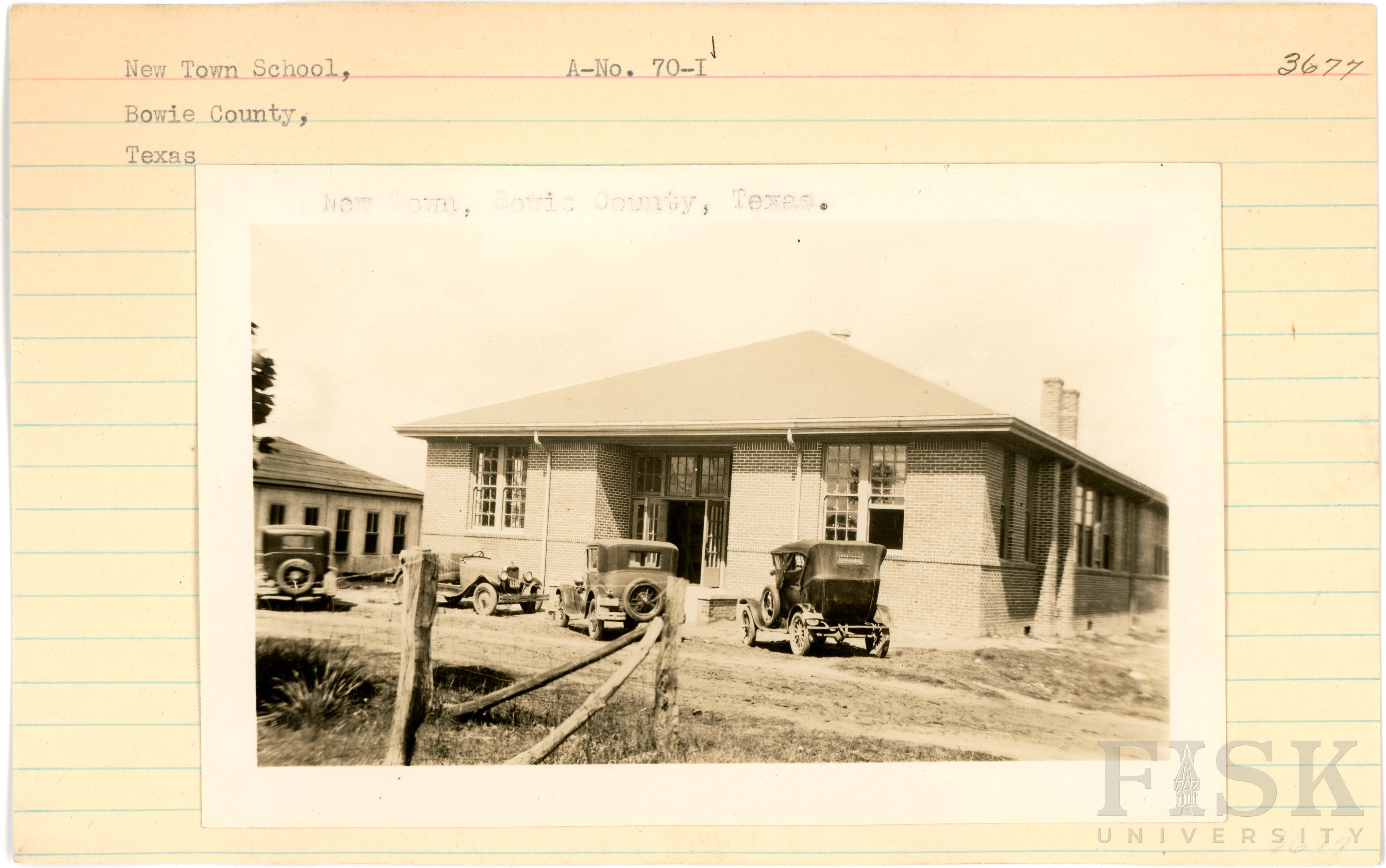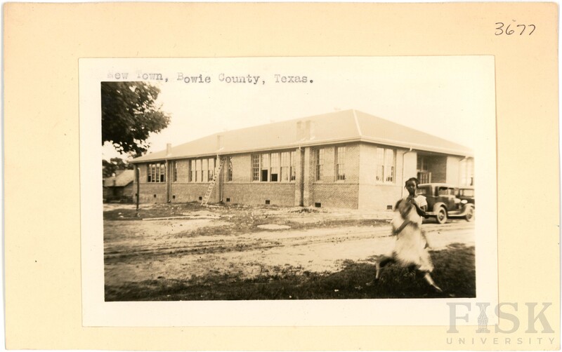 - Photos of New Town School in Bowie County, Texas with inscriptions that say, "New Town, Bowie County, Texas"