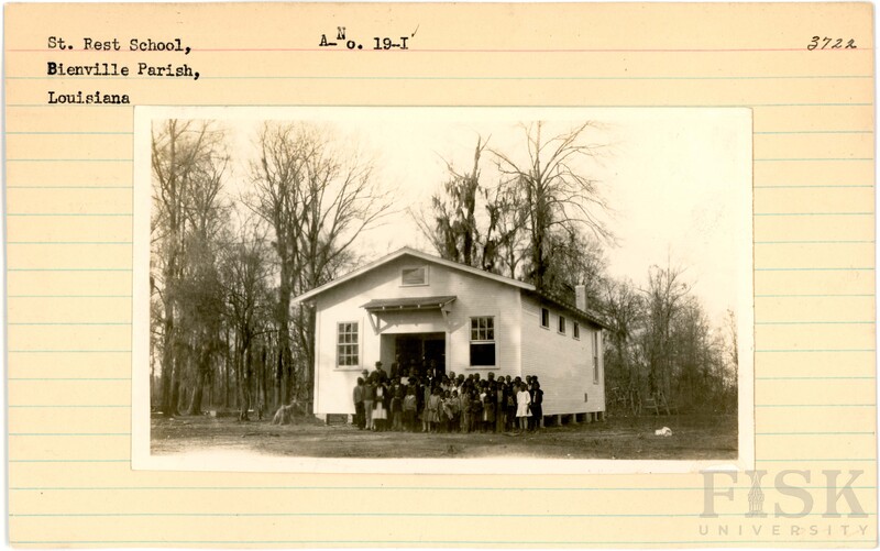 - Photo of pupils at St. Rest School in Bienville Parish, Louisiana on the front of the school card; photo of St. Rest School in Bienville Parish, Louisiana on the back of the card