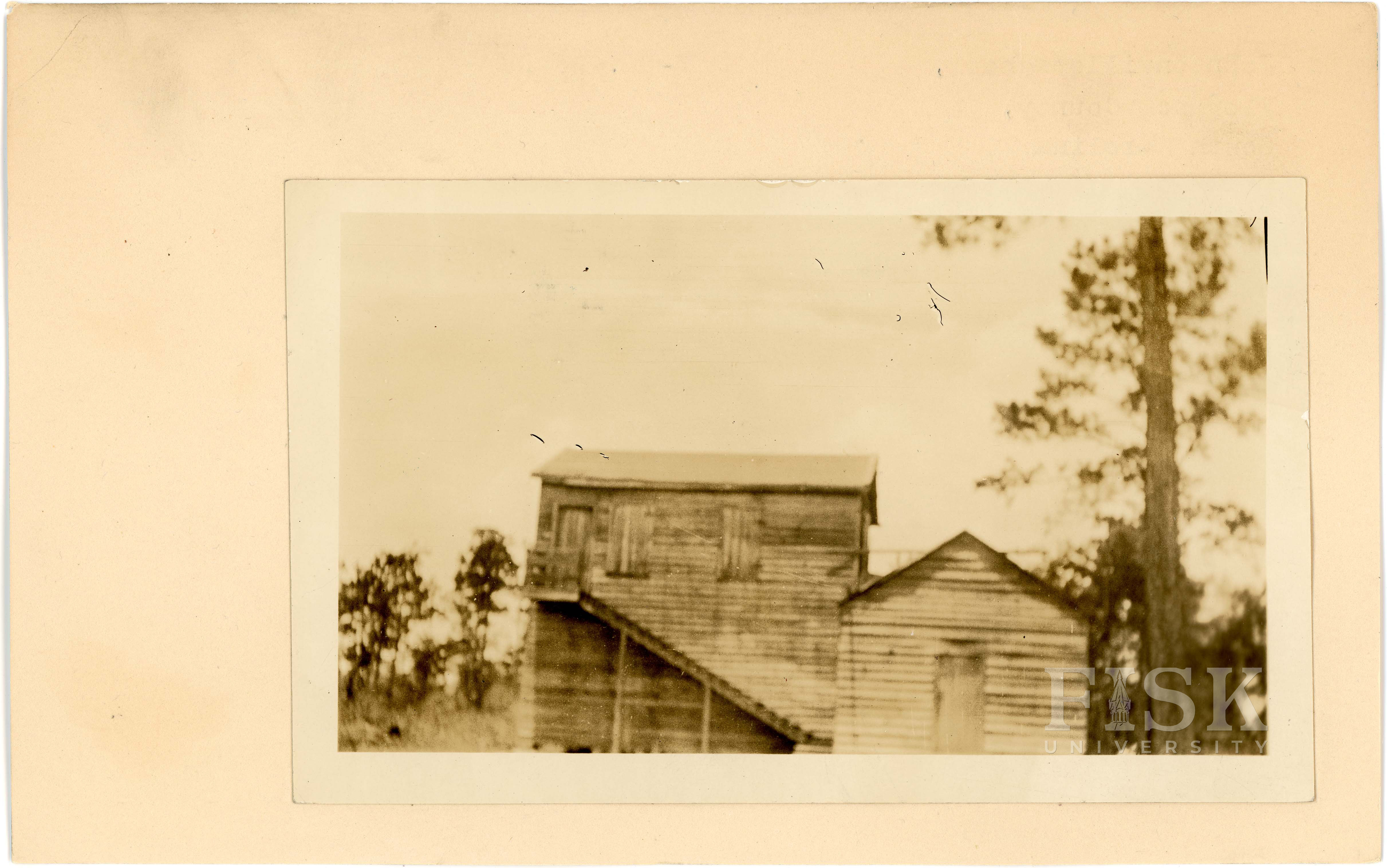 - School card for Johnsonville School in Florence County, South Carolina with no photo attached and a note on the front that says, "Photo on Back"; photo of Johnsonville School in Florence County, South Carolina on the back