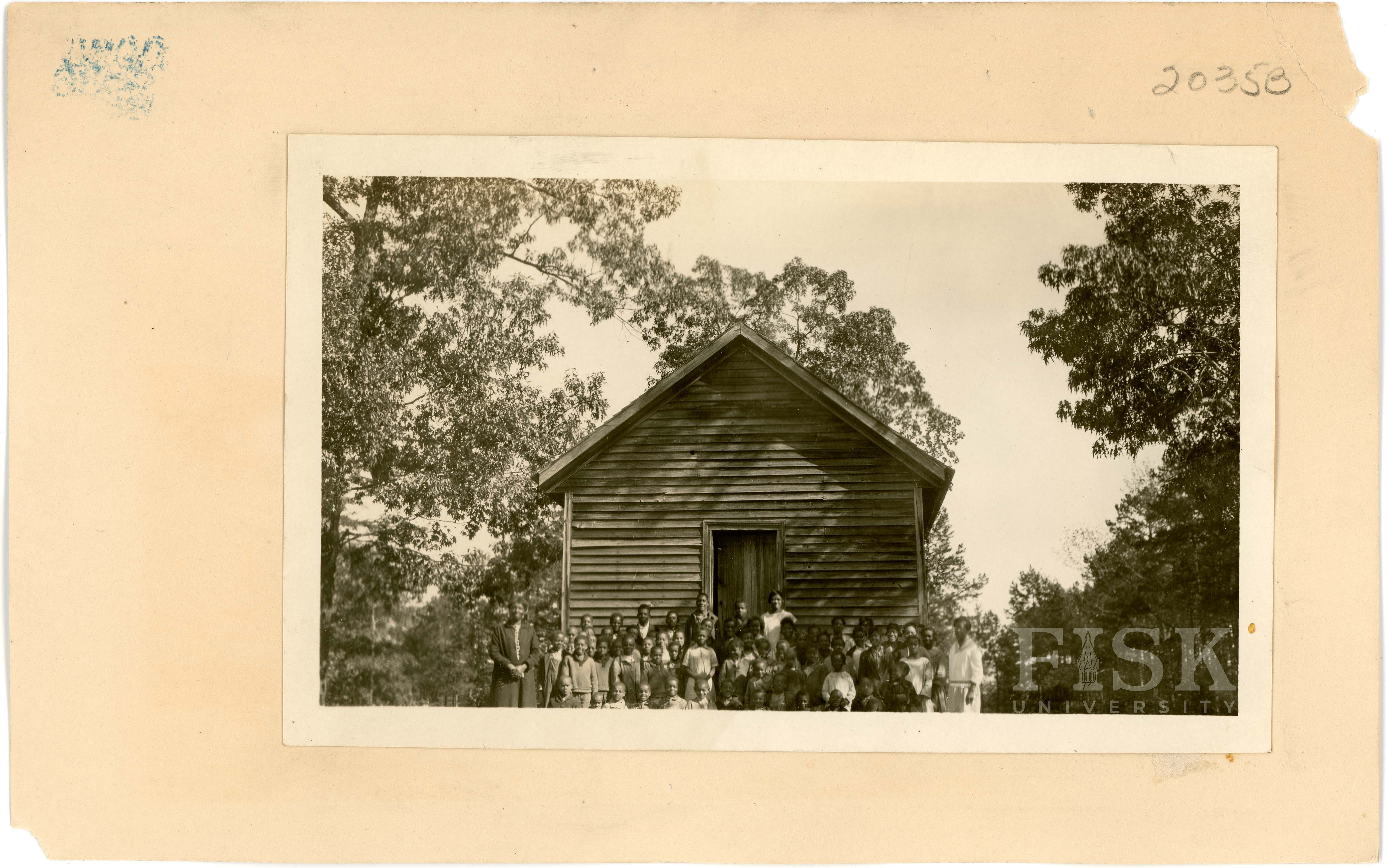Photo of Piney Grove School in Union County, North Carolina on the front of the school card; photo of students at Piney Grove School in Union County, North Carolina on the back