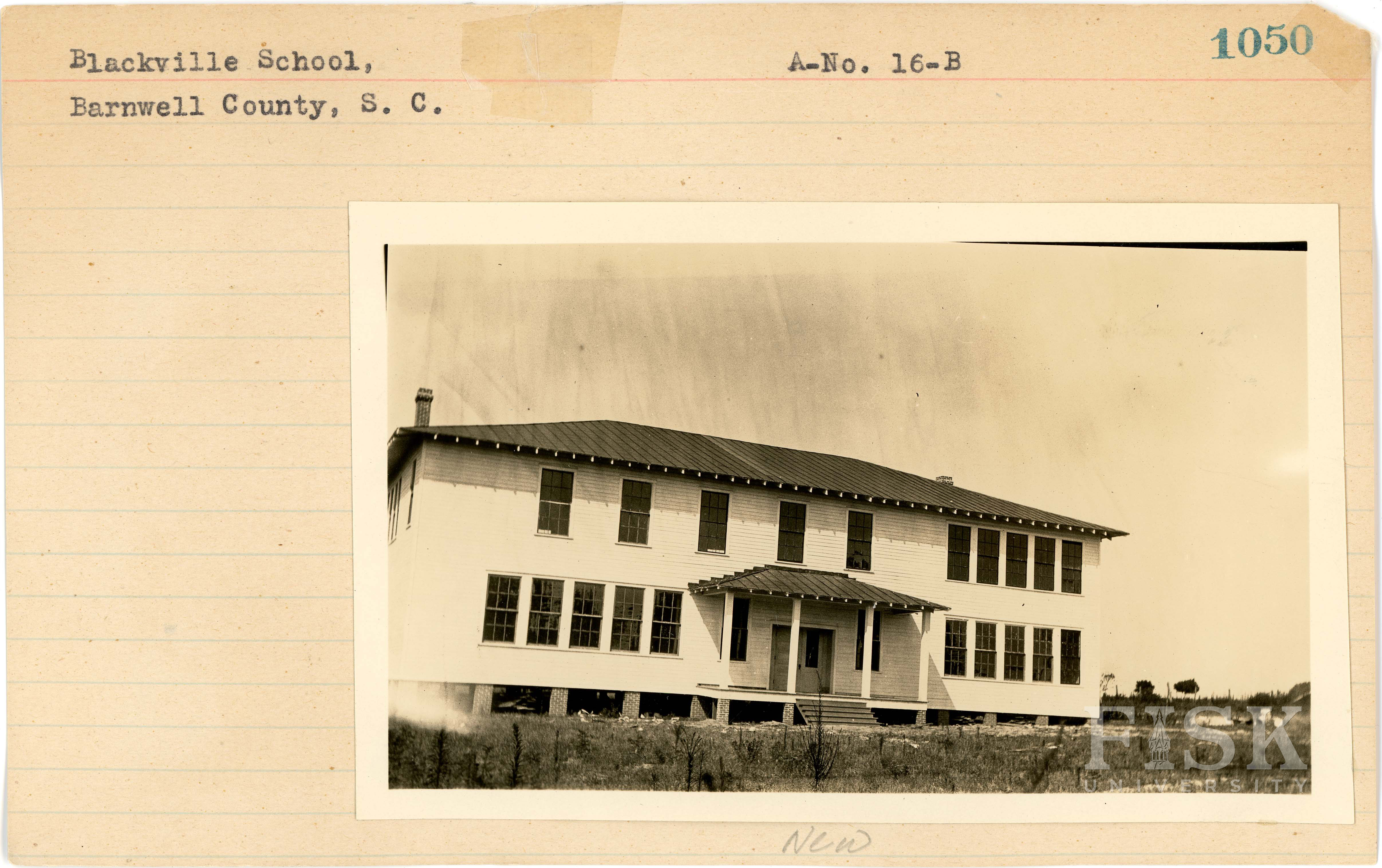- Photos of Blackville School in Barnwell County, South Carolina with a note on the front of the school card that says, "New" and a note on the back that says, "Old"