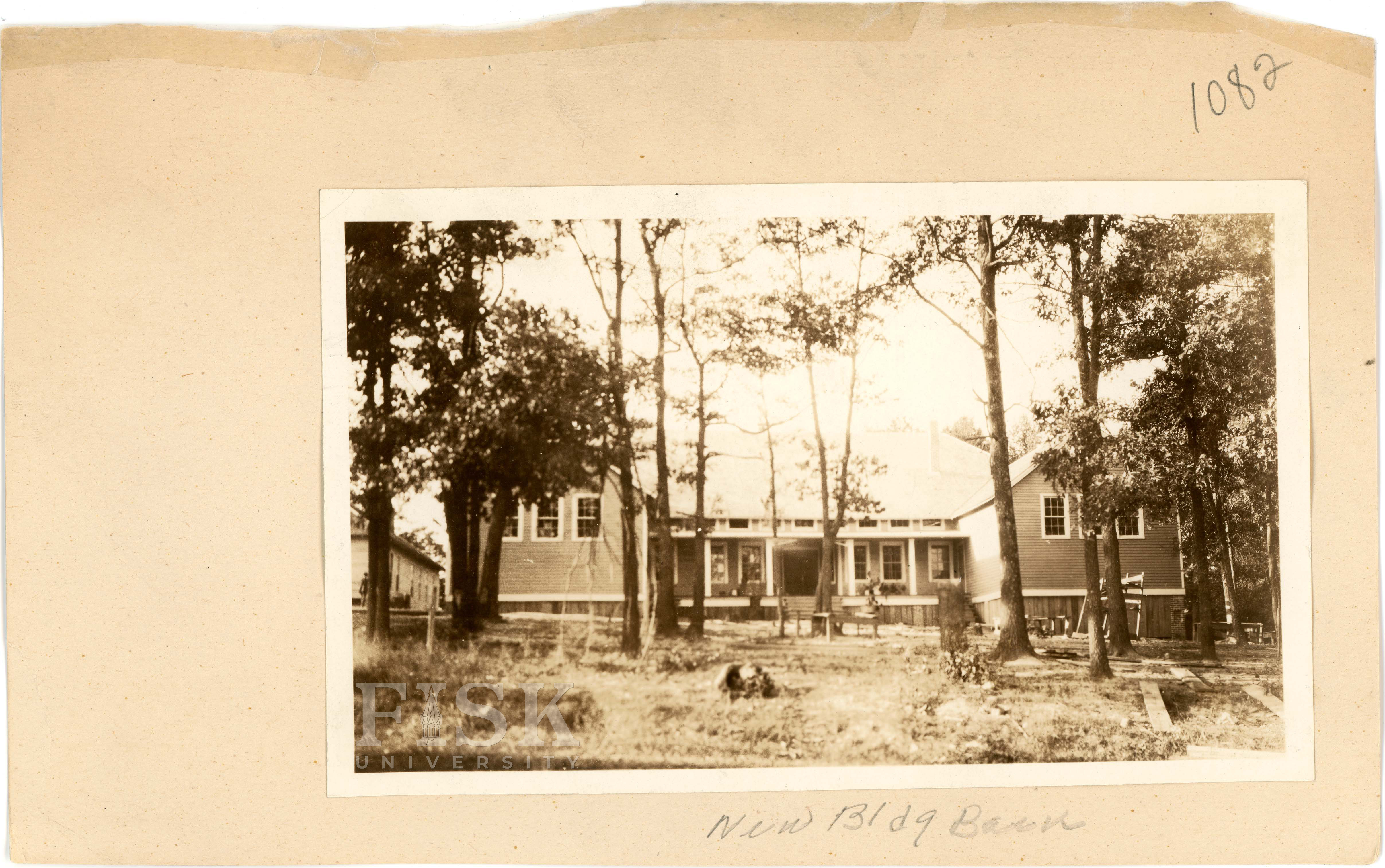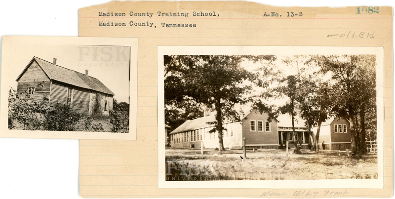 - Photos of County Training School in Madison County, Tennessee with notes on the front of the school card that say, "Old Bld" and "New Bldg Front", and a note on the back that says, "New Bldg Back"