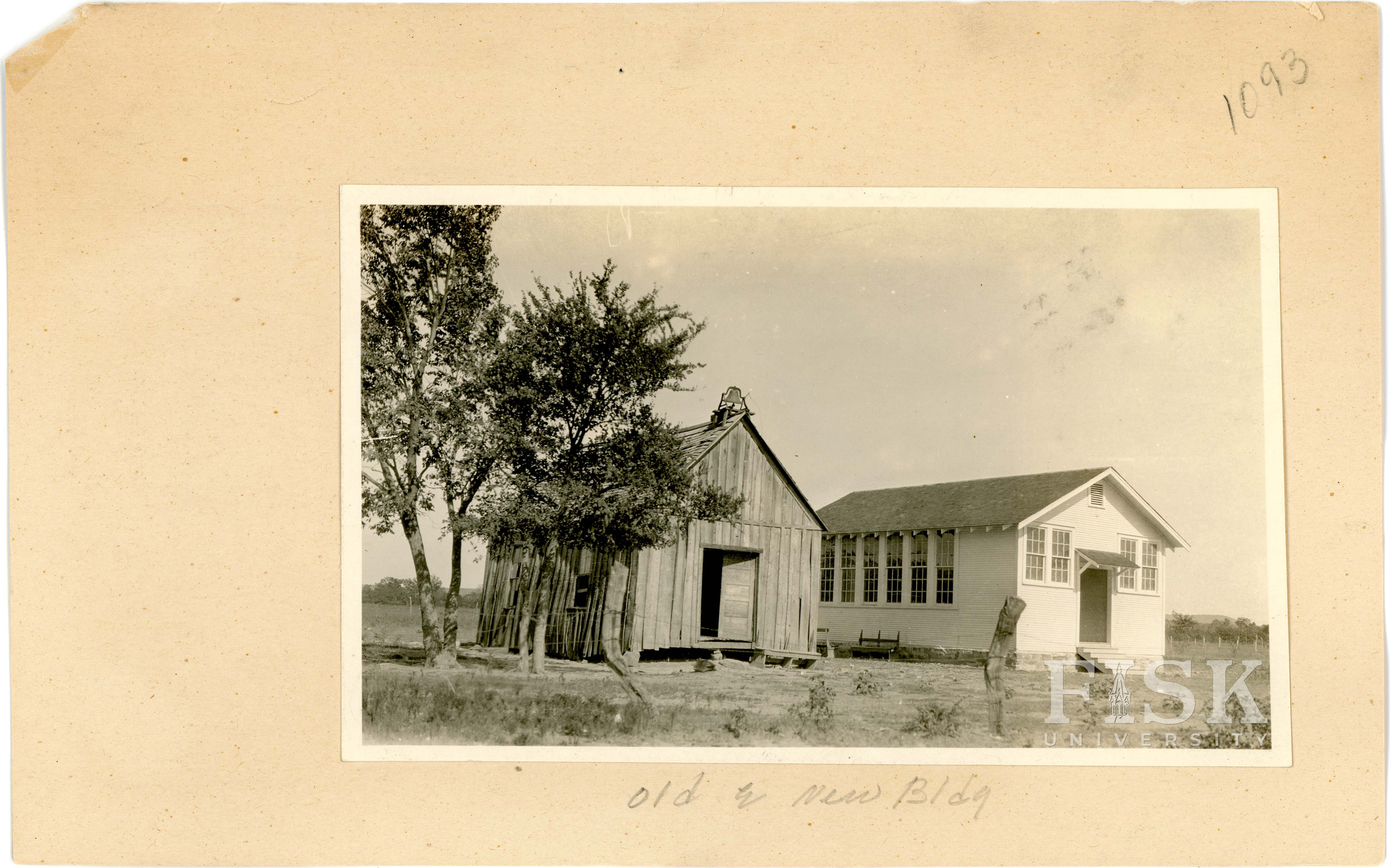 - Photos of Crowder School in Pittsburg County, Oklahoma with a note on the front of the school card that says, "New Front" and a note on the back that says, "Old & New Bldg"