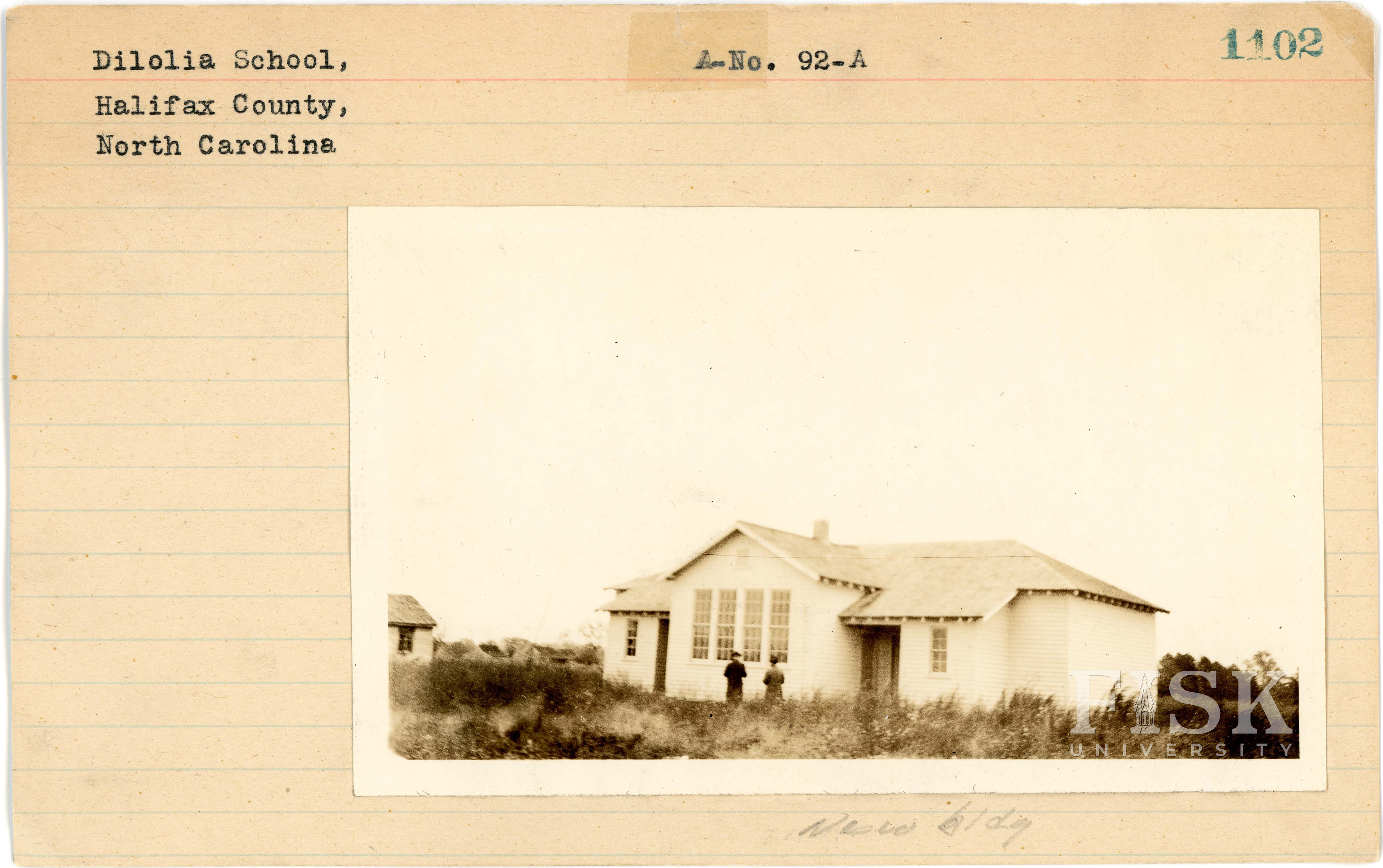 - Photos of Dilolia School in Halifax County, North Carolina with a note on the front of the school card that says, "New Bldg" and a note on the back that says, "Old Bldg"