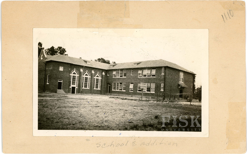 Photos of Lincoln Consolidated School in Alachua County, Florida with notes on the front of the school card that say, "Addition (see back of card) 1110" and "school", and a note on the back that says, "School & Addition"