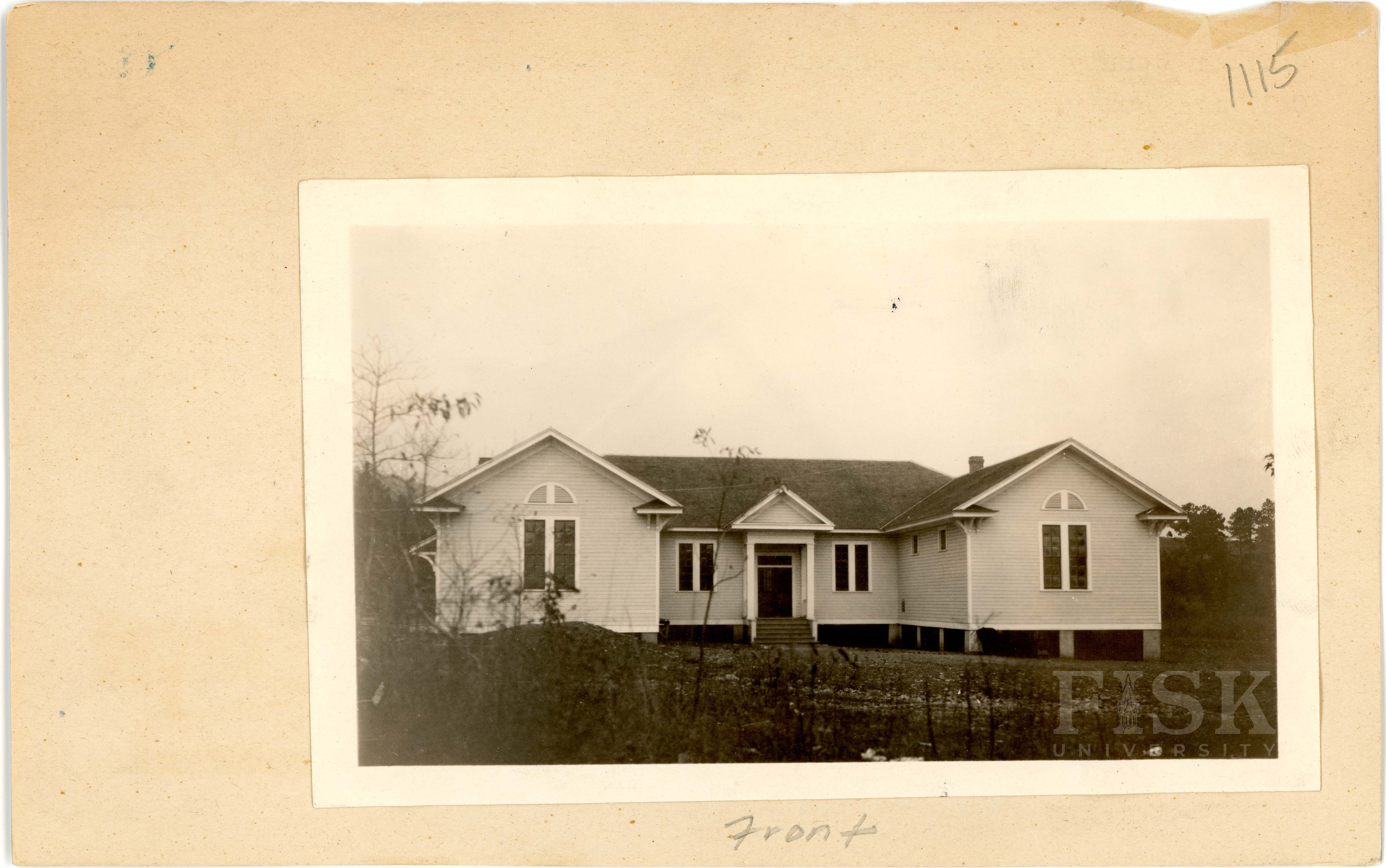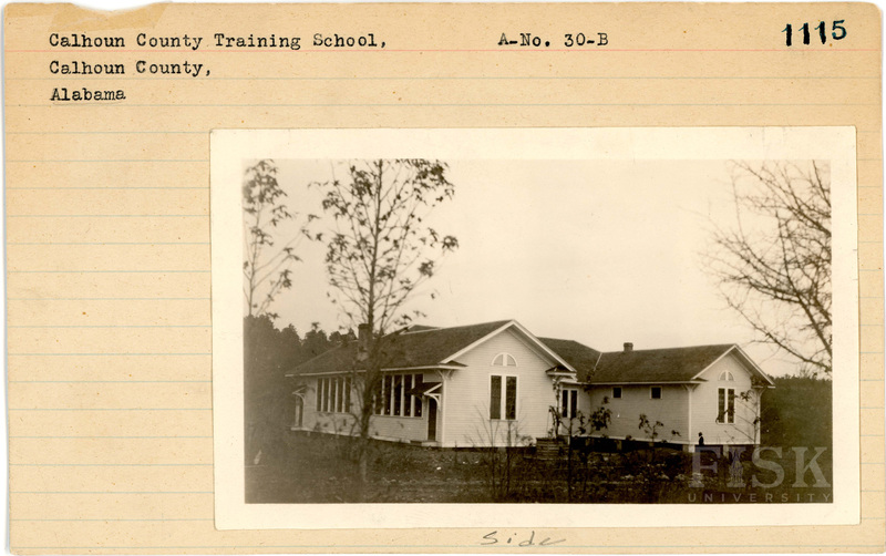 - Photos of County Training School in Calhoun County, Alabama with a note on the front of the school card that says, "Side" and a note on the back that says, "Front"