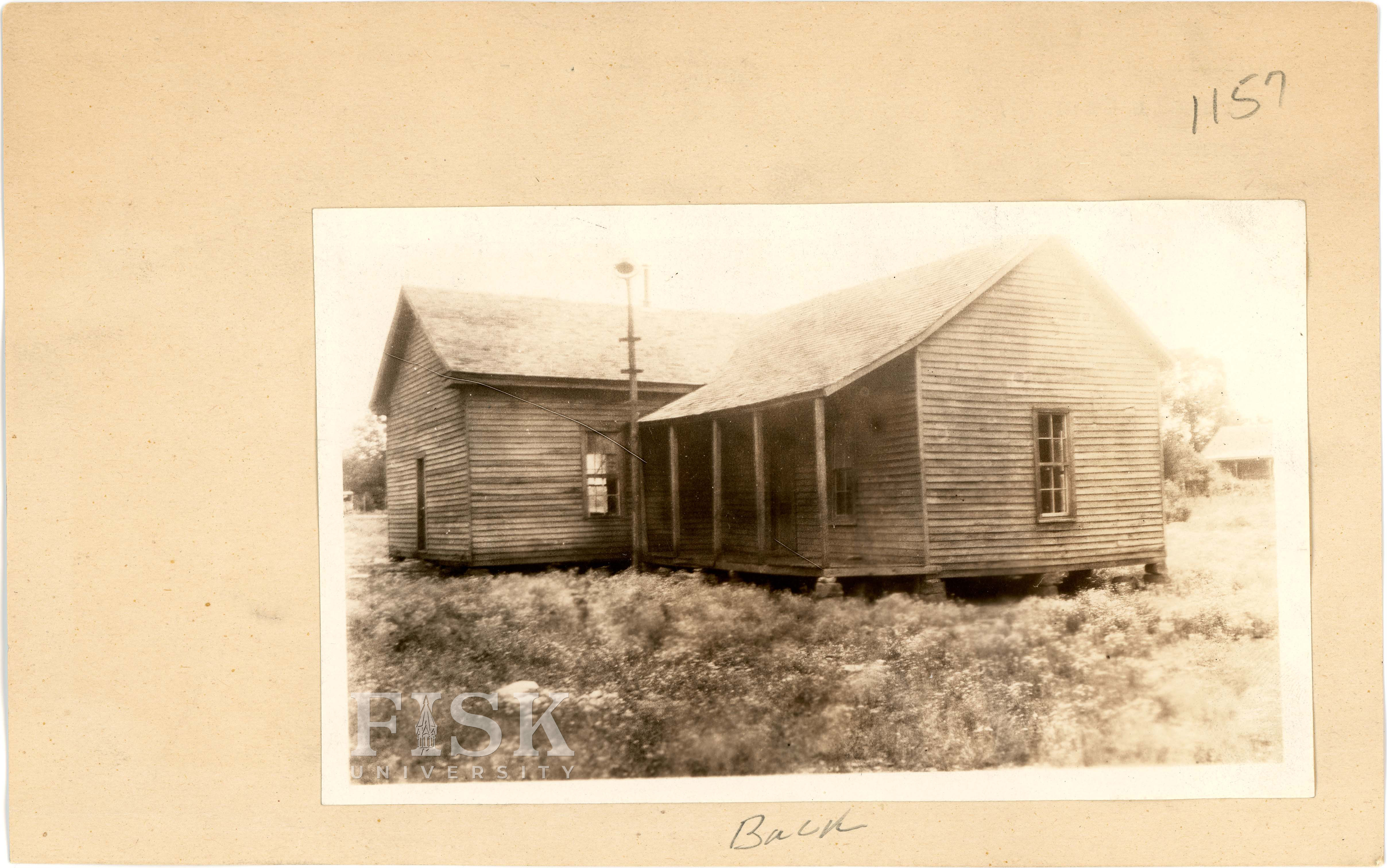 Photos of Farmington School in Marshall County, Tennessee with a note on the front of the school card that says, "Front" and a note on the back that say, "Back"