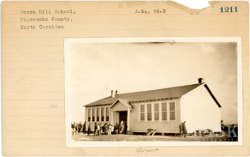 - Photos of Acorn Hill School in Edgecombe County, North Carolina with a note on the front of the card that says, "Front" and a note on the back that says, "Back"