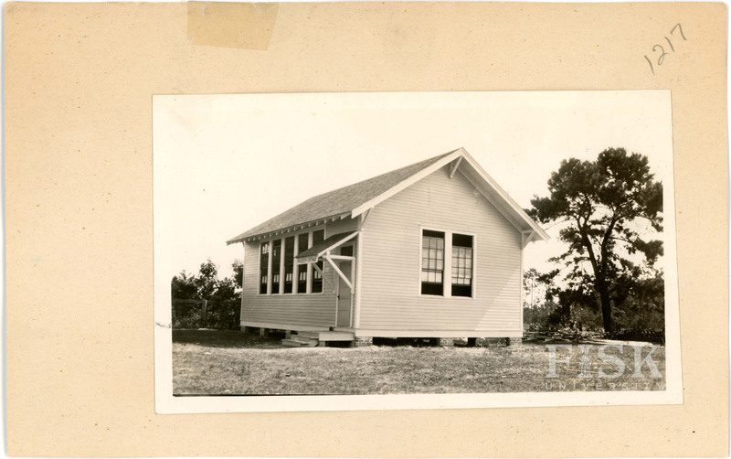 Photos of County Training School in Baldwin County, Alabama with notes on the front of the school card that say, "Addition see back of card" and "(Tuskegee School)"