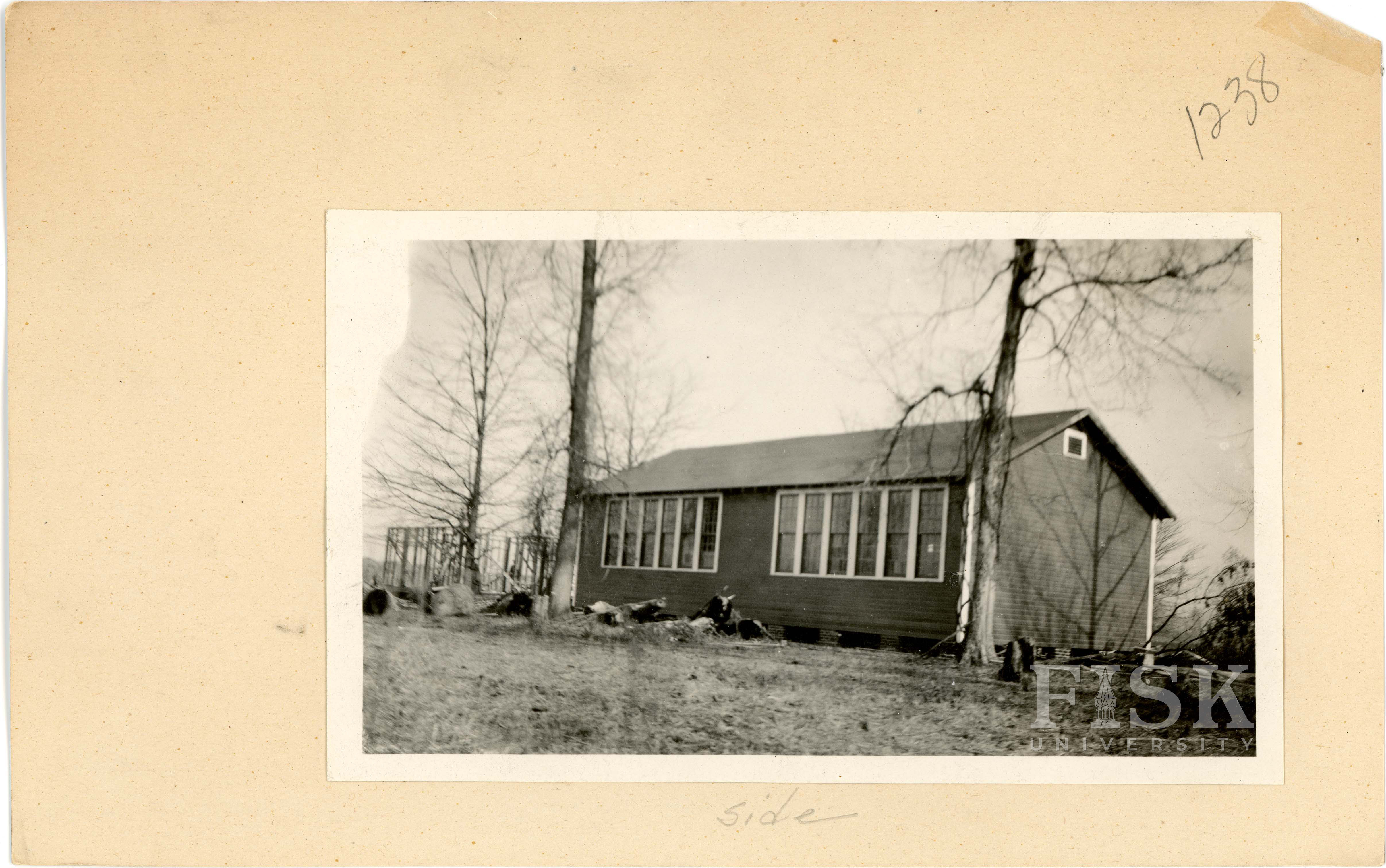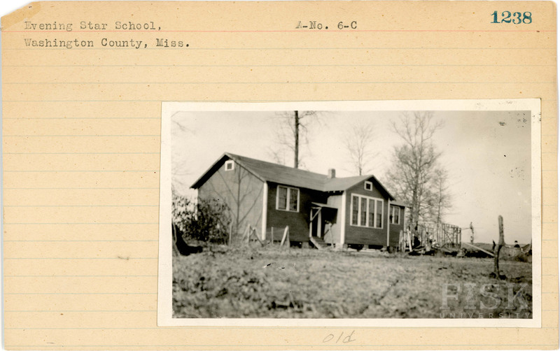- Photos of Evening Star School in Washington County, Mississippi with a note on the front of the school card that says, "old" and a note on the back that says, "side"