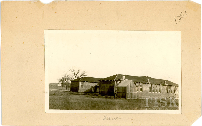 - Photos of Douglas School in Okfuskee County, Oklahoma with a note on the front of the school card that says, "Front" and a note on the back that says, "Back"
