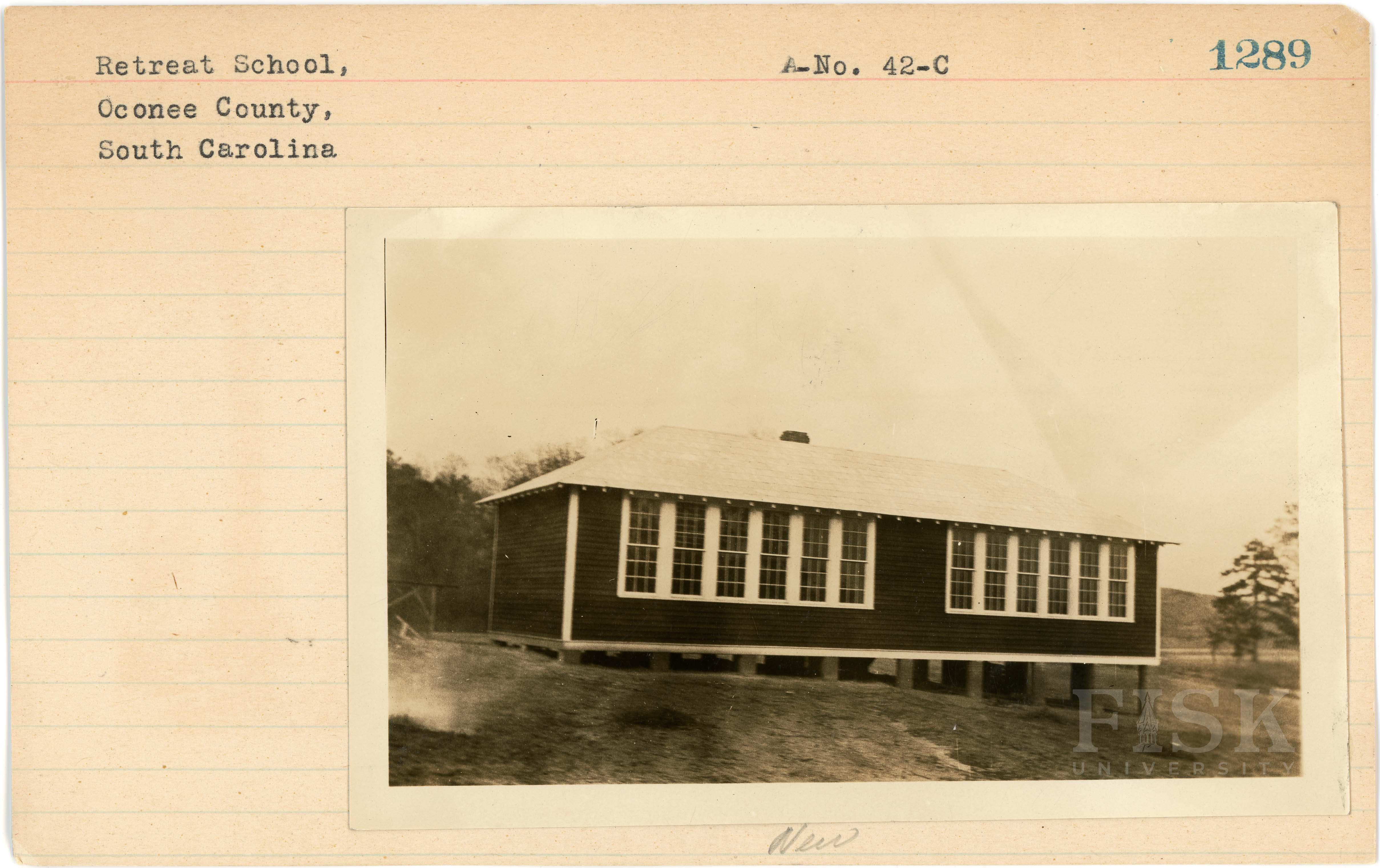 - Photos of Retreat School in Oconee County, South Carolina with a note on the front of the school card that says, "New" and a note on the back that says, "Old"