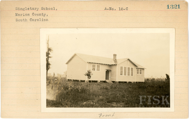- Photos of Singletary School in Marion County, South Carolina with a note on the front of the school card that says, "Front" and a note on the back that says, "Back"