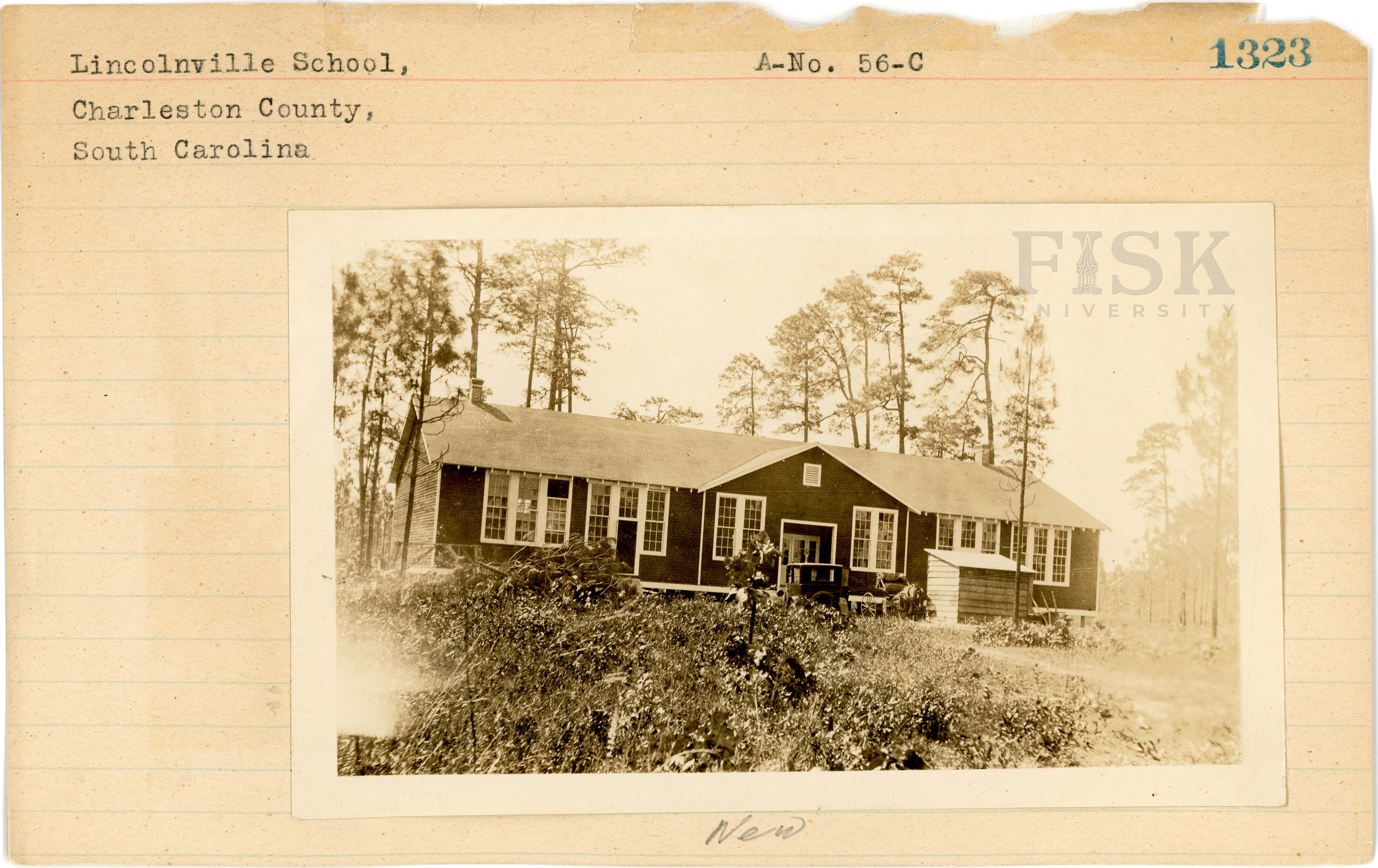 - Photos of Lincolnville School in Charleston County, South Carolina with a note on the front of the school card that says, "New" and a note on the back that says, "Old"