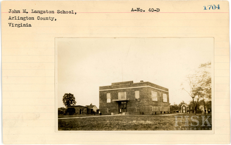 - Photo of John M. Langston School in Arlington County, Virginia on the front of the school card; photo of the interior of John M. Langston School in Arlington County, Virginia on the back of the card