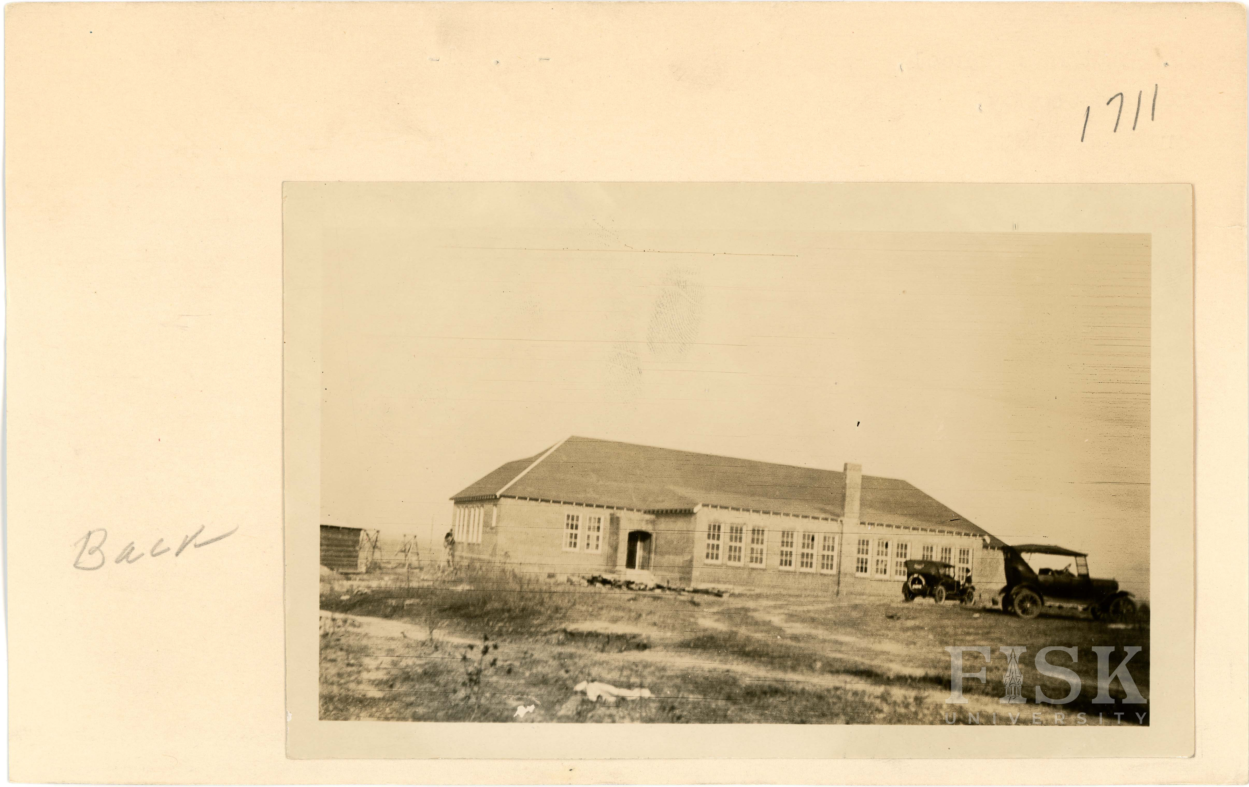 Photo of St. Matthews School in Calhoun County, South Carolina with a note on the front of the school card that says, "Front"; photo of St. Matthews School in Calhoun County, South Carolina on the back of the card with a note that says, "Back"