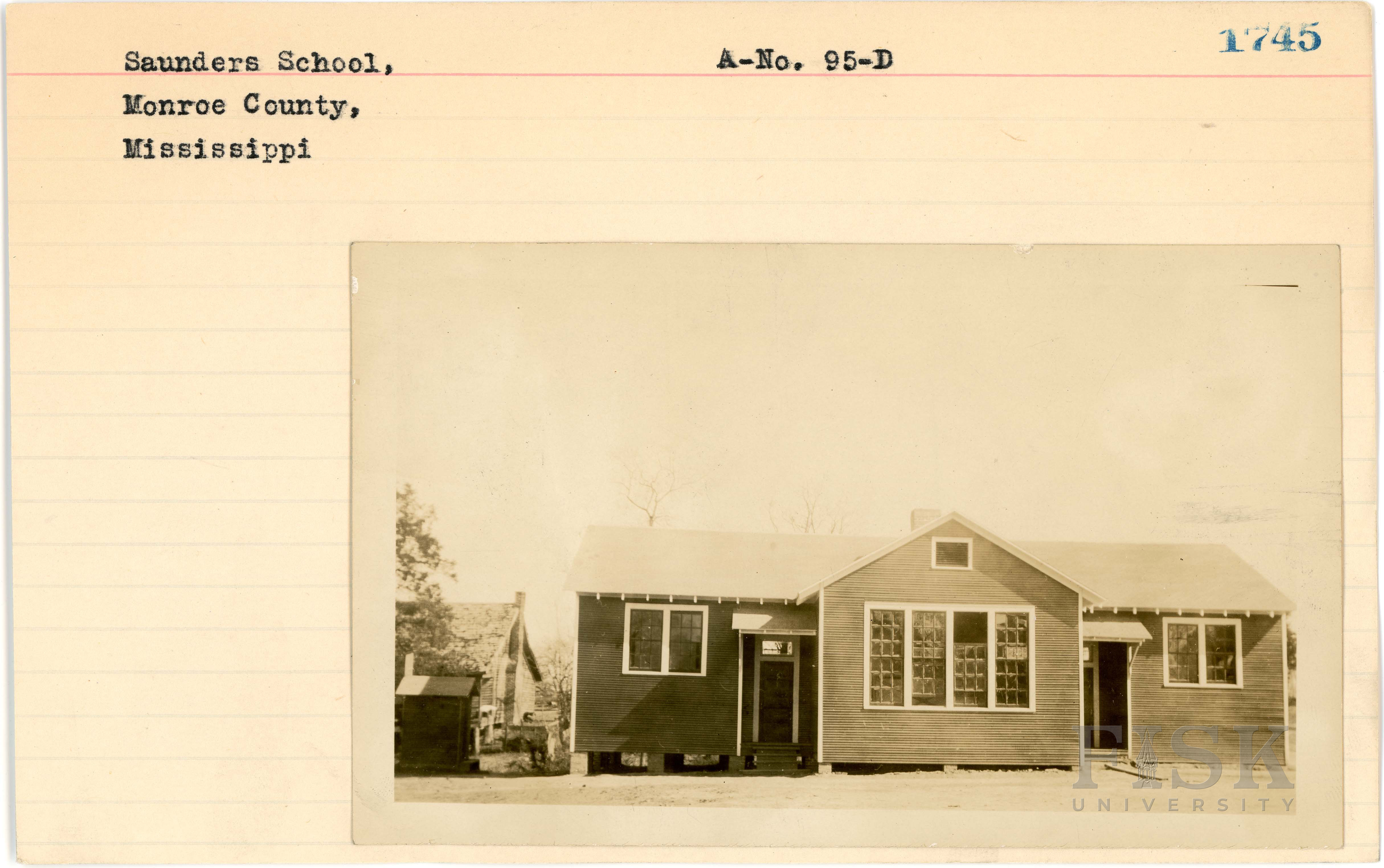 - Photo of Saunders School in Monroe County, Mississippi