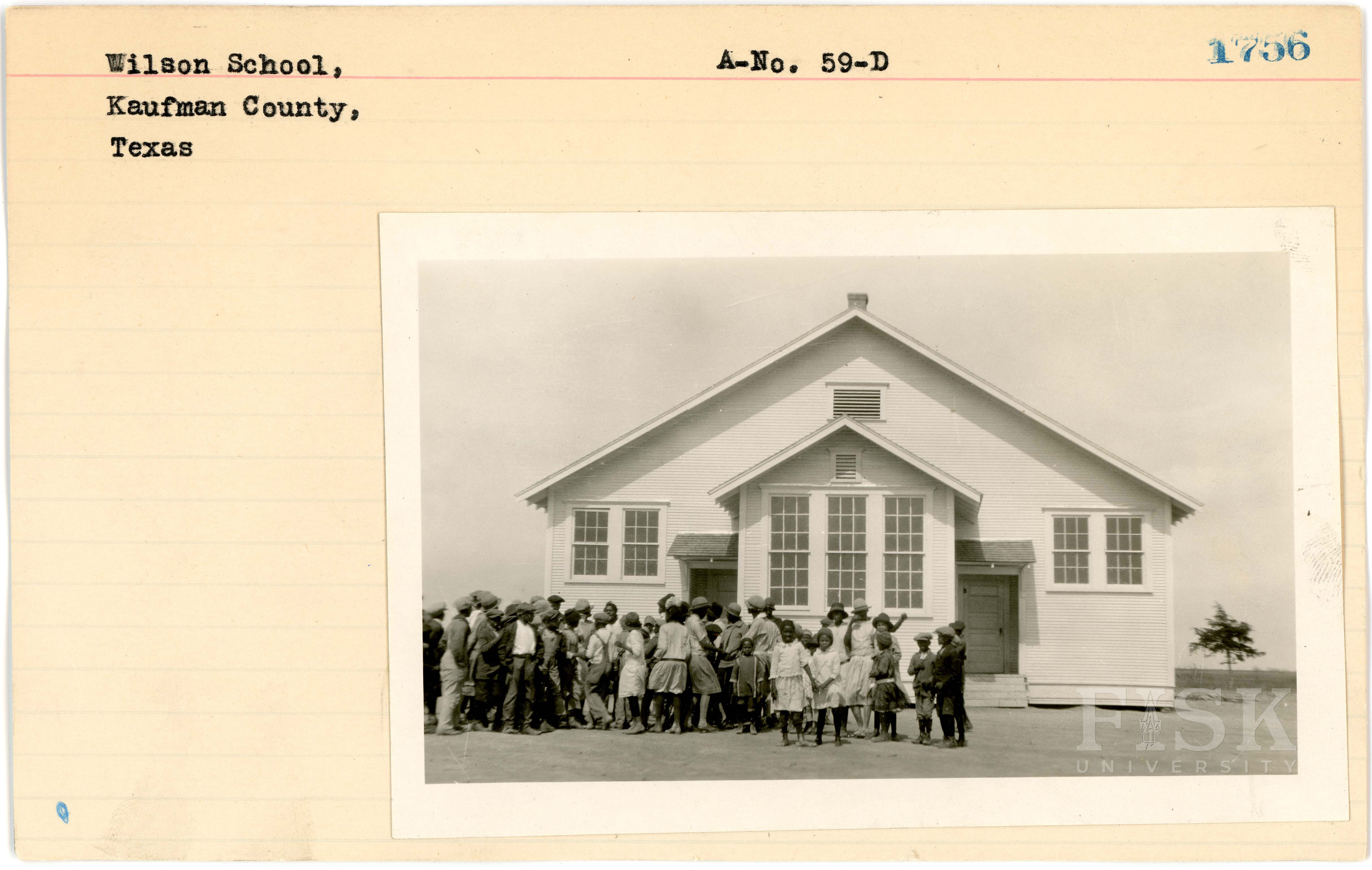 - Photo of pupils at Wilson School in Kaufman County, Texas on the front of the school card; photo of Wilson School in Kaufman County, Texas on the back of the card